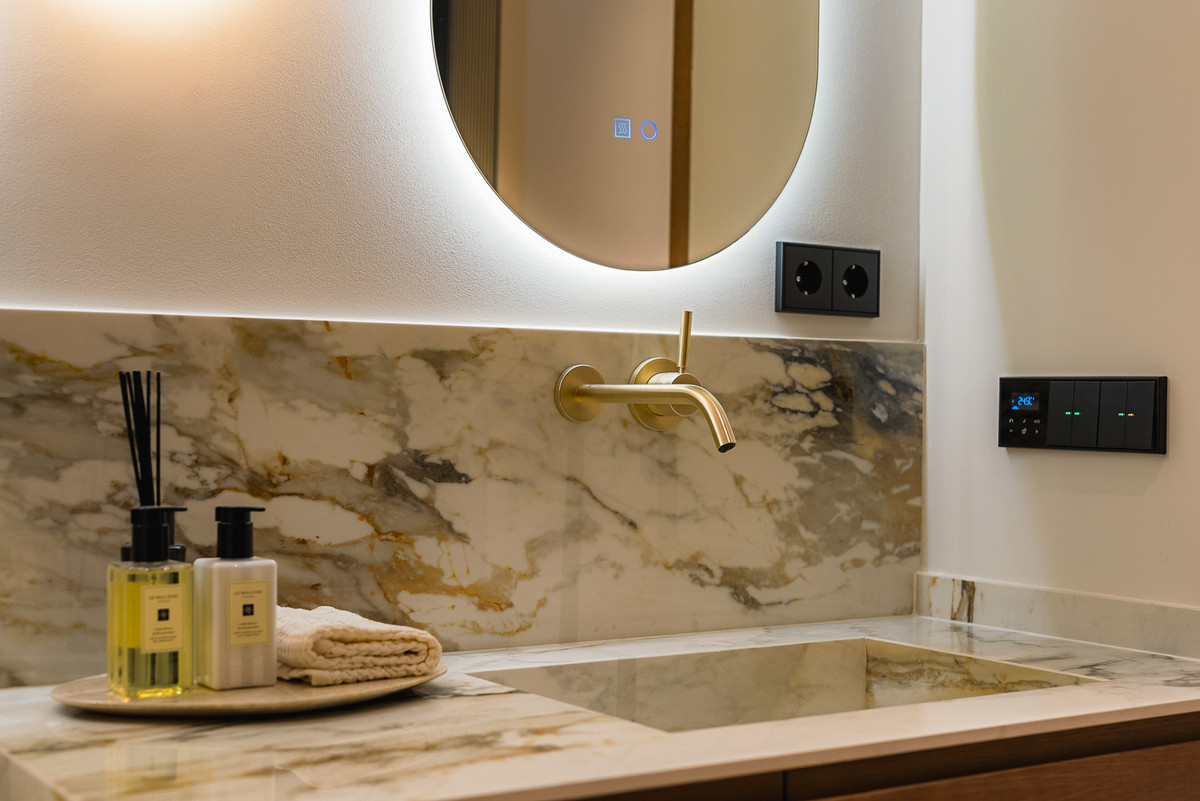 The apartment features three spacious bedrooms, two modern bathrooms, and a guest toilet, all spread across 110 m² of stylish interiors. A private 20 m² terrace provides stunning panoramic views of the Mediterranean and unforgettable sunsets — the perfect spot to relax or entertain in absolute privacy and comfort.