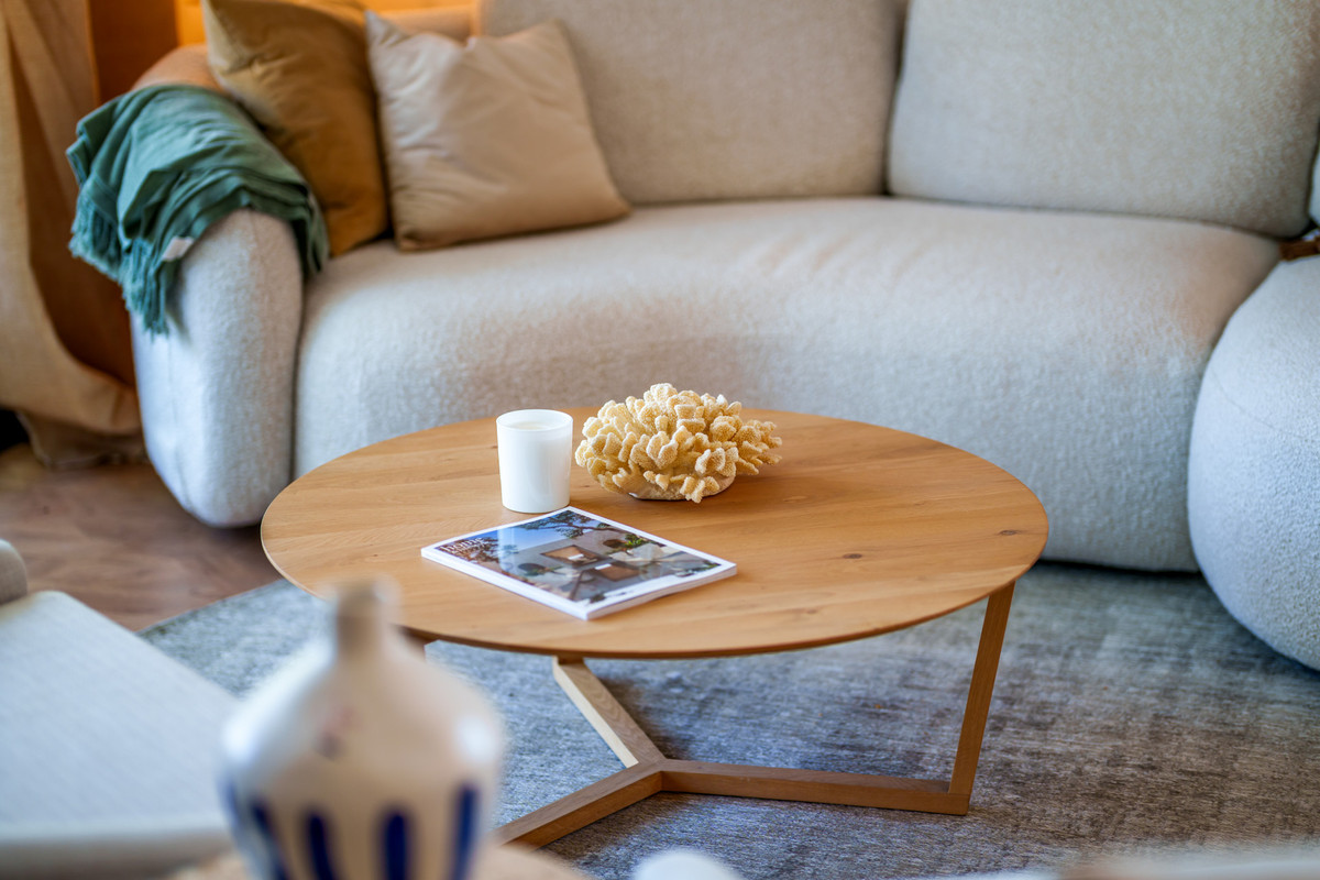 Once inside, the interiors reveal a fresh and contemporary design with a modern boho-chic touch. Light tones, natural textures, and carefully chosen décor create an atmosphere that feels bright, open, and welcoming. The living room, with its impressive double-height ceiling, enhances the sense of volume and brings in abundant natural light, creating the perfect setting for both relaxation and entertaining.