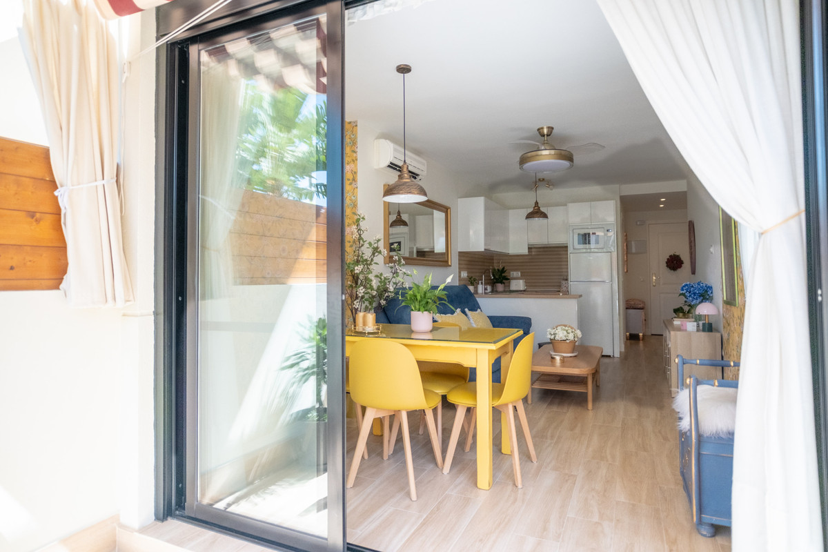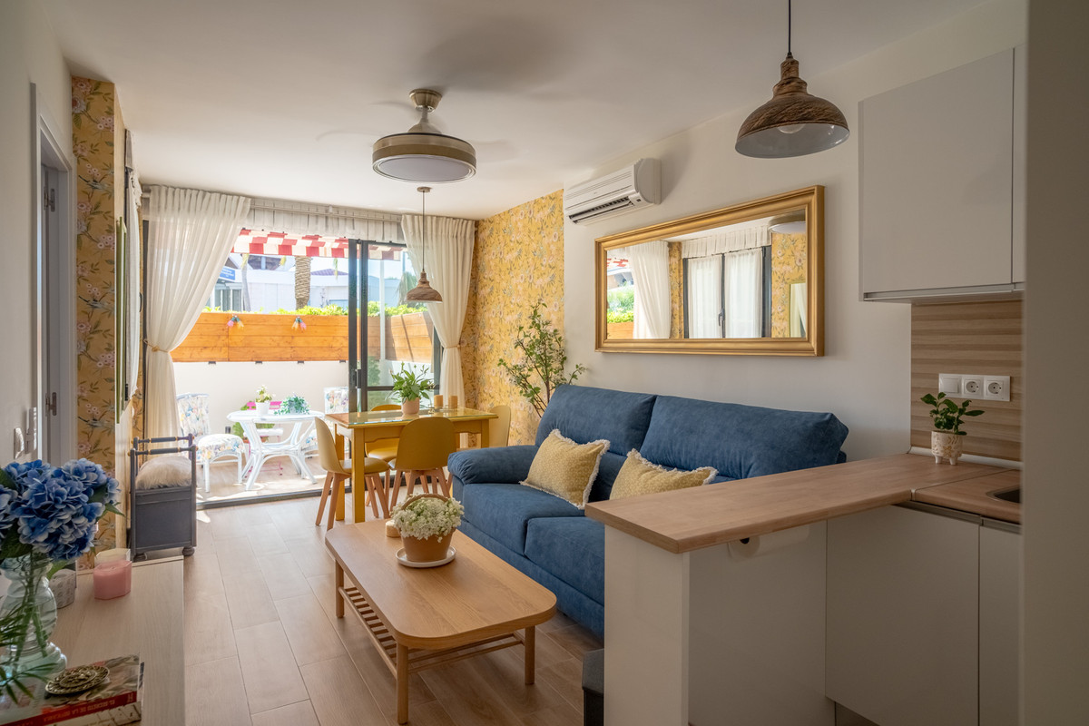 Mysig bottenvåning lägenhet ligger bara 170 meter från stranden i Torremolinos. Denna ljusa, sydvändiga fastighet erbjuder all komfort och charm av seaside living. Den har en privat ingång utan trappor och privat parkering vid ingången i fastigheten, vilket garanterar enkel och bekväm tillgång.