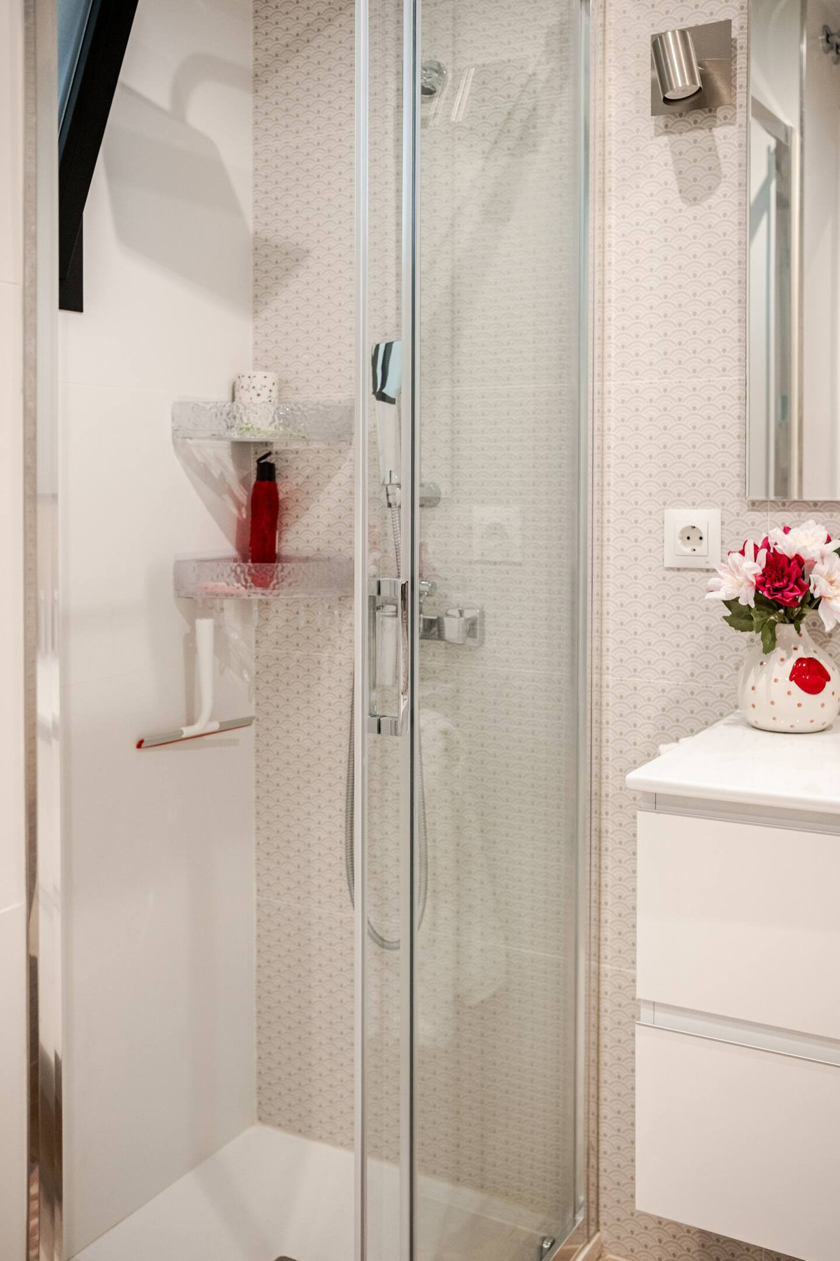 Lägenheten innehåller ett fullt utrustat kök, två väldistribuerade sovrum och ett komplett badrum med en rymlig dusch. Vardagsrummet öppnar direkt på en stor terrass omgiven av frodiga trädgårdar, ett perfekt utrymme för att njuta av utomhusmat, koppla av i solen eller dela ögonblick i en lugn miljö.