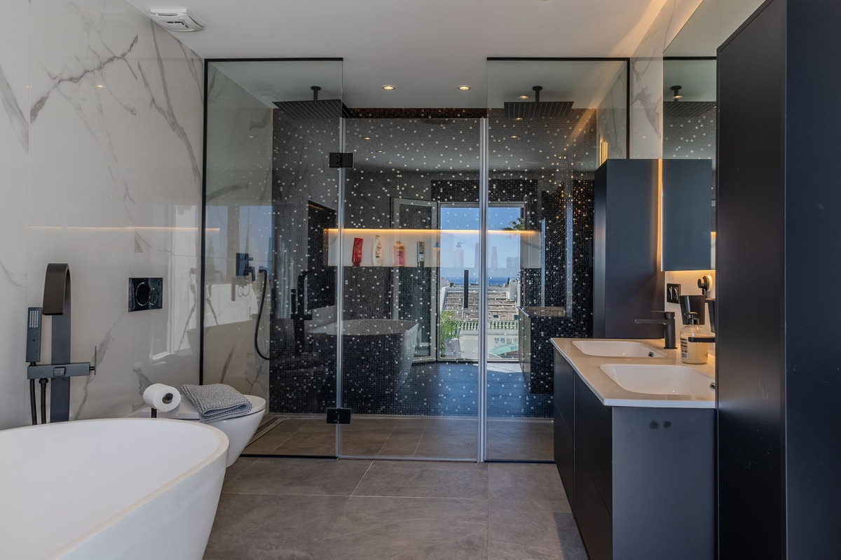 Fördelat på tre våningar erbjuder detta hem 198 m² sofistikerad interiör kompletterad av 174 m² soldränkta terrasser. Designen kombinerar modern elegans med komfort, med 4 rymliga sovrum, 3 badrum och en gästtoalett.