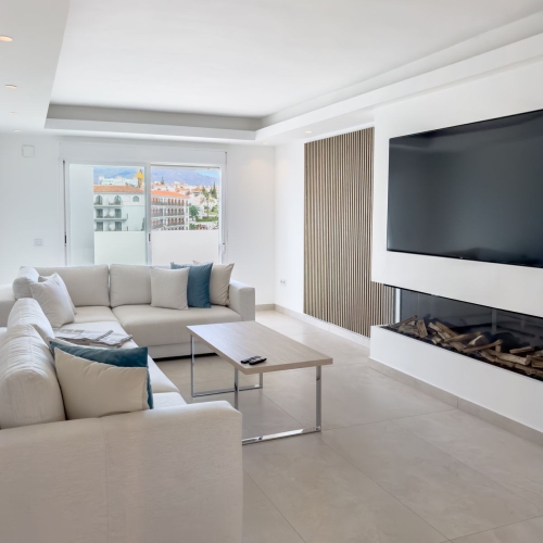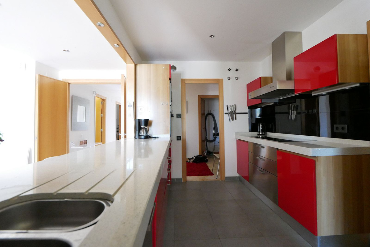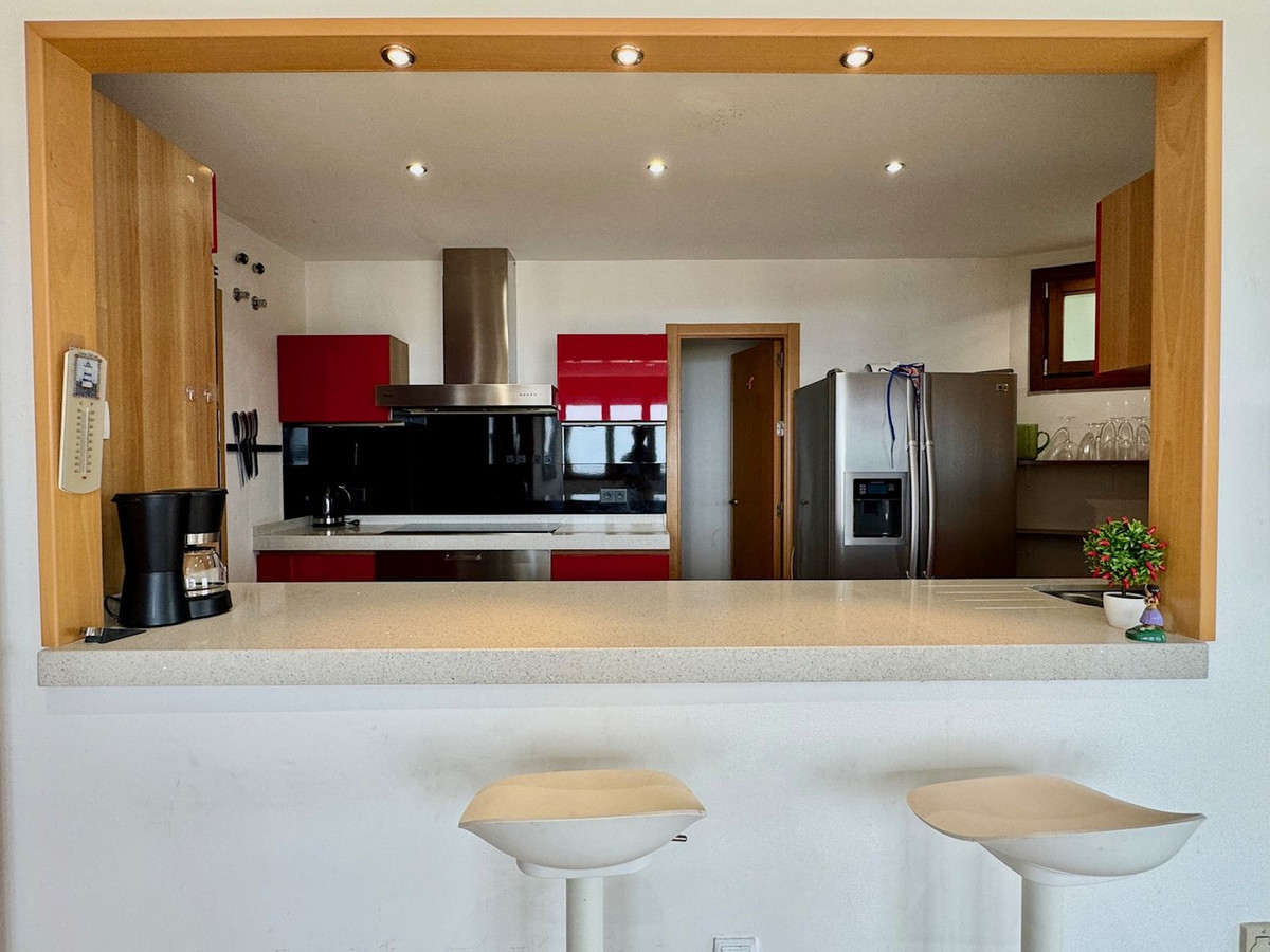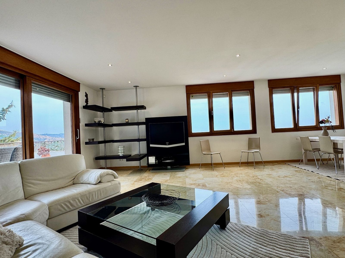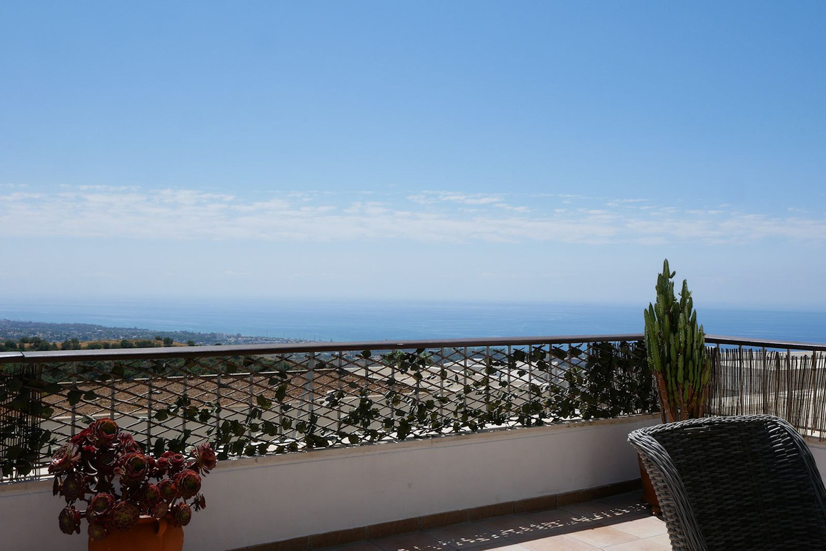 Detta är en riktigt ljus, lyxig och modern takvåning med tre sovrum till salu i Marbella. Ägaren har ett giltigt skäl för en brådskande försäljning. Allt på ett plan upptar denna takvåning hela översta våningen i en byggnad i komplex strax utanför Marbella på berget i fashionabla Los Monteros. Den har till och med en egen privat hiss (för närvarande inte aktiverad) och en egen privat trappa. Denna enhet är belägen i den bästa byggnaden och erbjuder den renaste panoramautsikten över med och även längs kusten över Marbella och Puerto Banus ner mot Gibraltar. Kök och nya möbler ingår i försäljningen. I försäljningen ingår två garageplats och ett förråd.