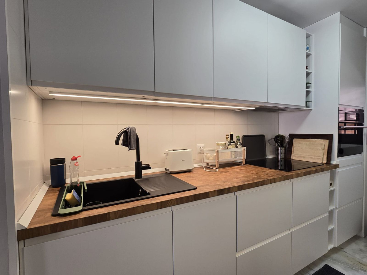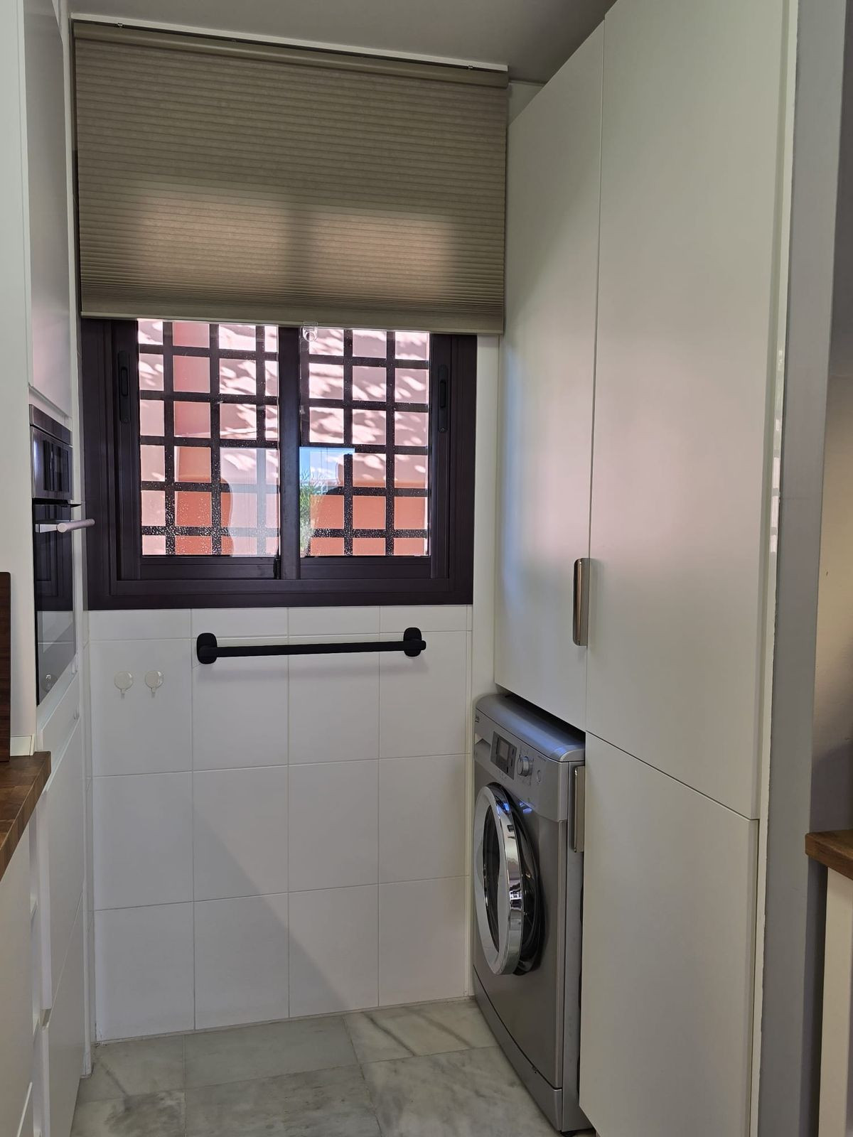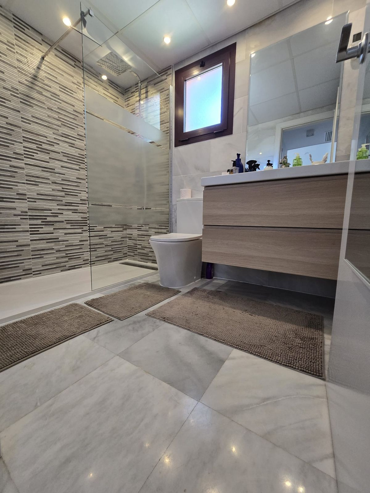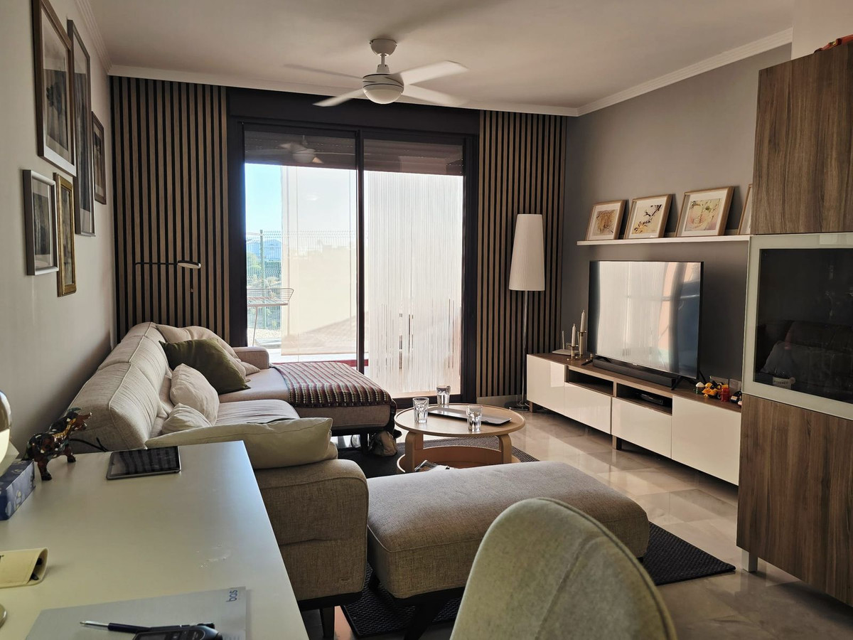 Modern och delvis renoverad hörnlägenhet med 2 sovrum, 1 badrum med fönster och marmorgolv i hela lägenheten. Njut av ett nytt kök och badrum, värme- och kylanläggning (AC) samt takfläktar i varje rum. Lägenheten har dessutom en privat 20 m² terrass och trädgård, perfekt för avkoppling eller gäster. Glasgardiner med persienner skapar extra utrymme under vintern, och nya terrassplattor ger en elegant finish.