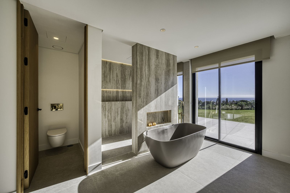 Discover the pinnacle of modern luxury with this brand new "Ibiza style" villa, perfectly positioned in the exclusive, elevated area of El Rosario in East Marbella. This stunning home offers panoramic sea views from every single room, providing a breathtaking backdrop to your daily life. Situated on a magnificent flat garden of more than 2,000 m², the property enjoys an optimal orientation that guarantees sunlight all day long.