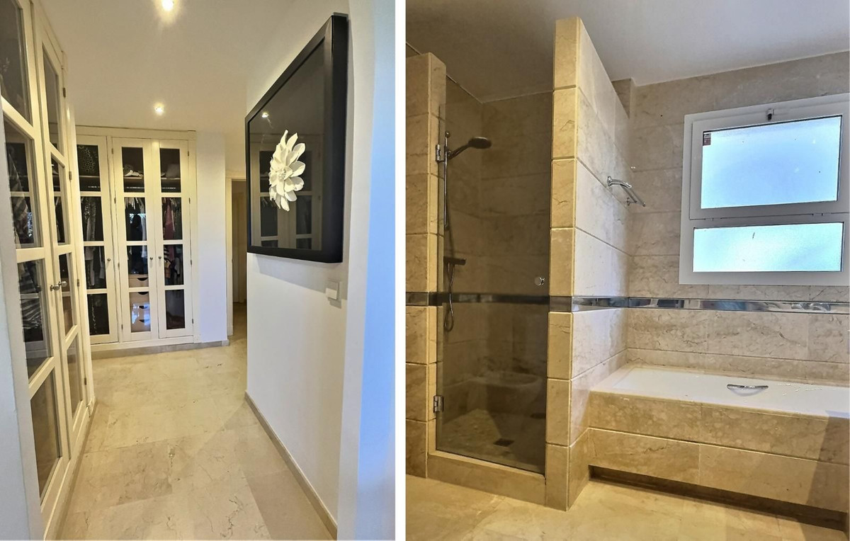This property features marble floors, hot & cold air conditioning, and underfloor heating in the bathrooms, ensuring year-round comfort. It also includes 2 underground parking spaces, 2 storerooms, and 2 golf buggy parking spaces, all included in the price.