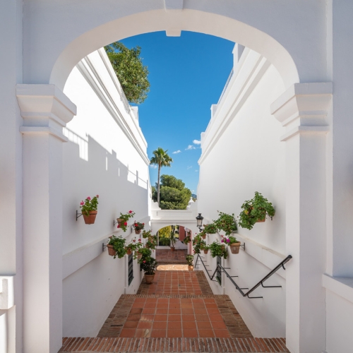 The property is just a five-minute drive or a 25-minute walk from the famous Puerto Banús marina and only a few minutes by car from Marbella's Old Town. Everyday amenities are close at hand, with a Mercadona supermarket within the community and a bus stop just a minute away.