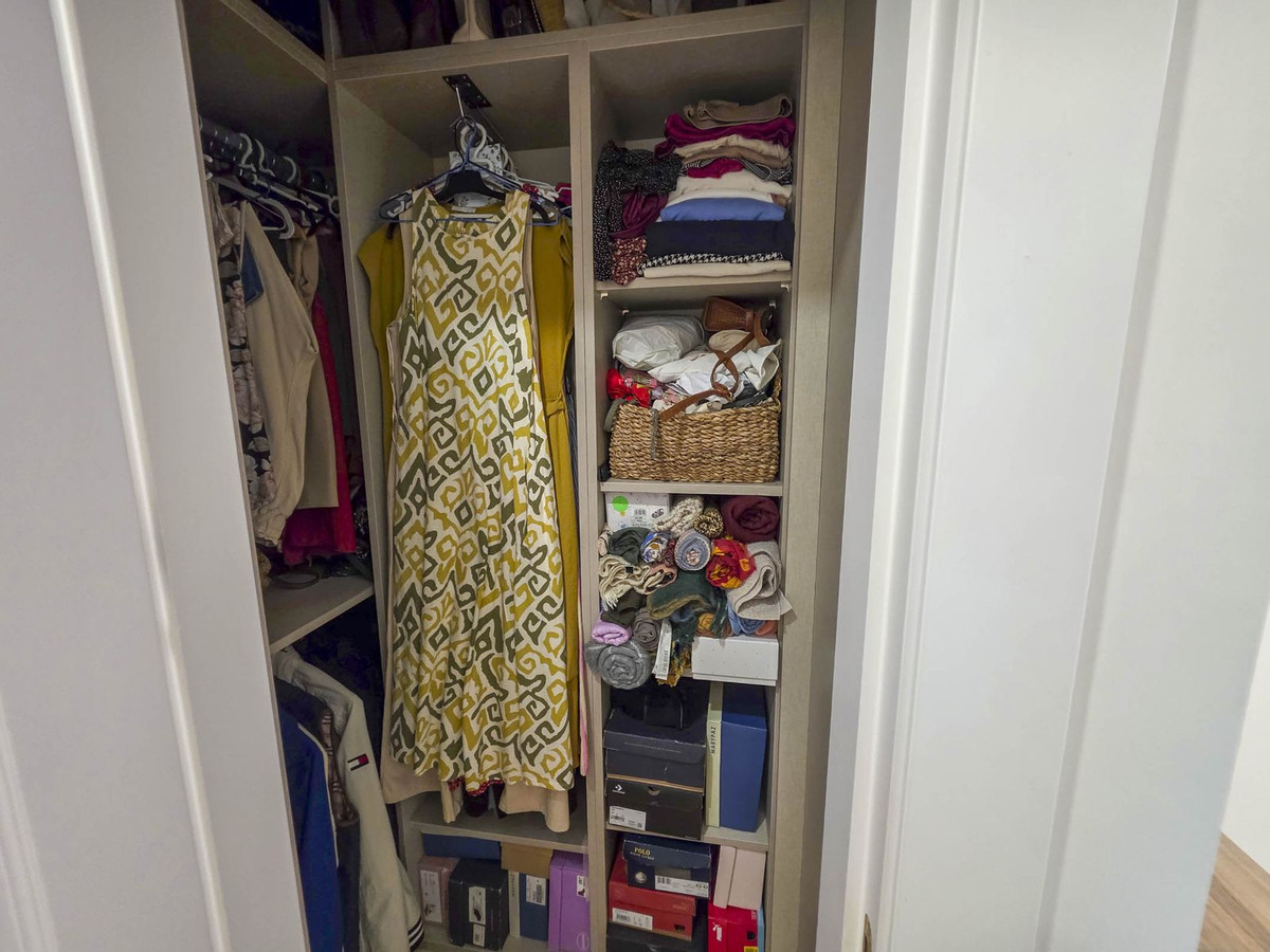Med en boyta på 112 m², belägen på en mellanvåning med hiss, har bostaden en praktisk planlösning. Vardagsrummet med matsal leder ut till en delvis inglasad terrass med fin havsutsikt, perfekt att använda året runt, även på vintern. Dessutom finns en andra inglasad terrass, tillgänglig från två av sovrummen – ett extra utrymme för avkoppling, läsning eller arbete.