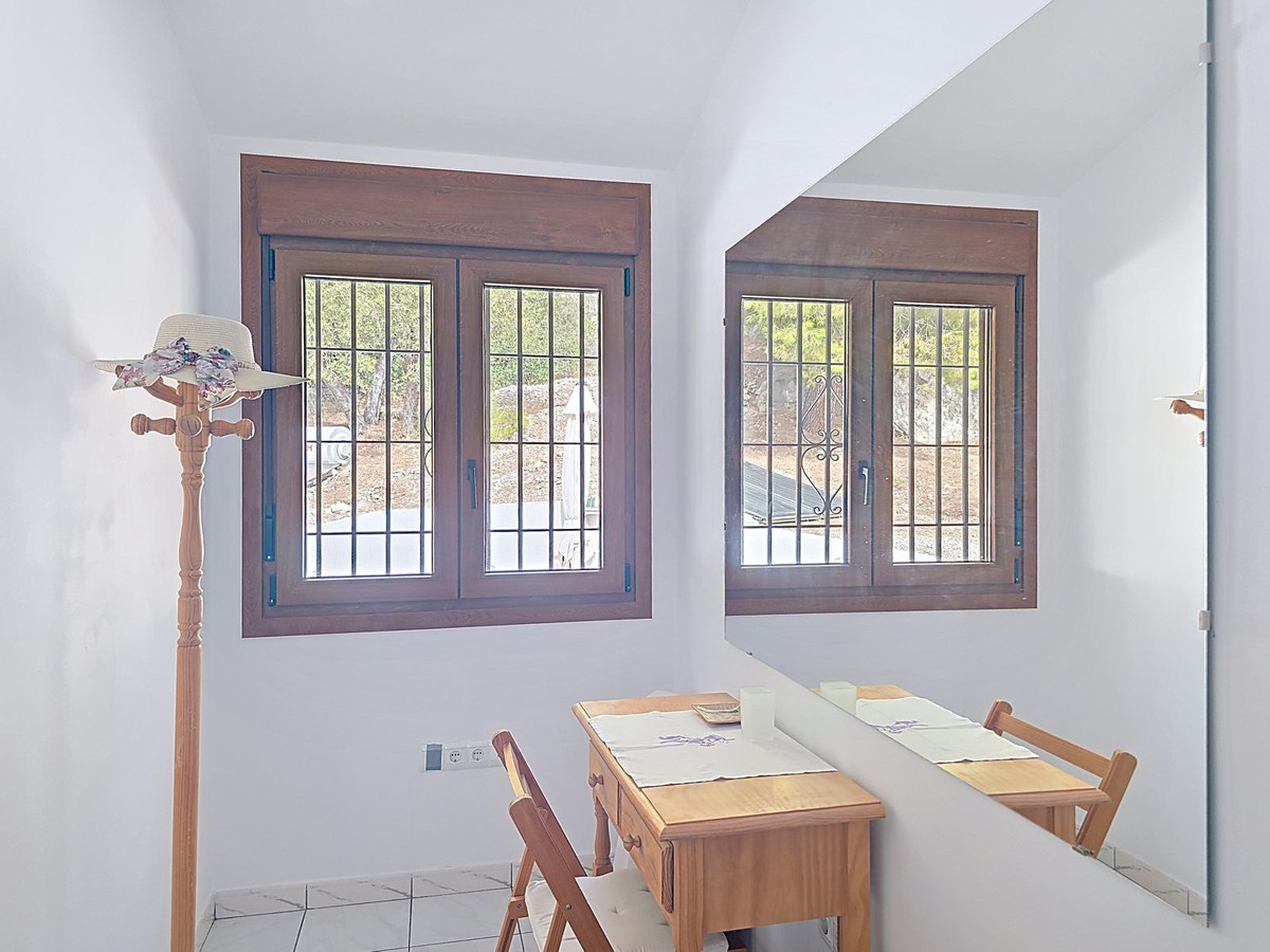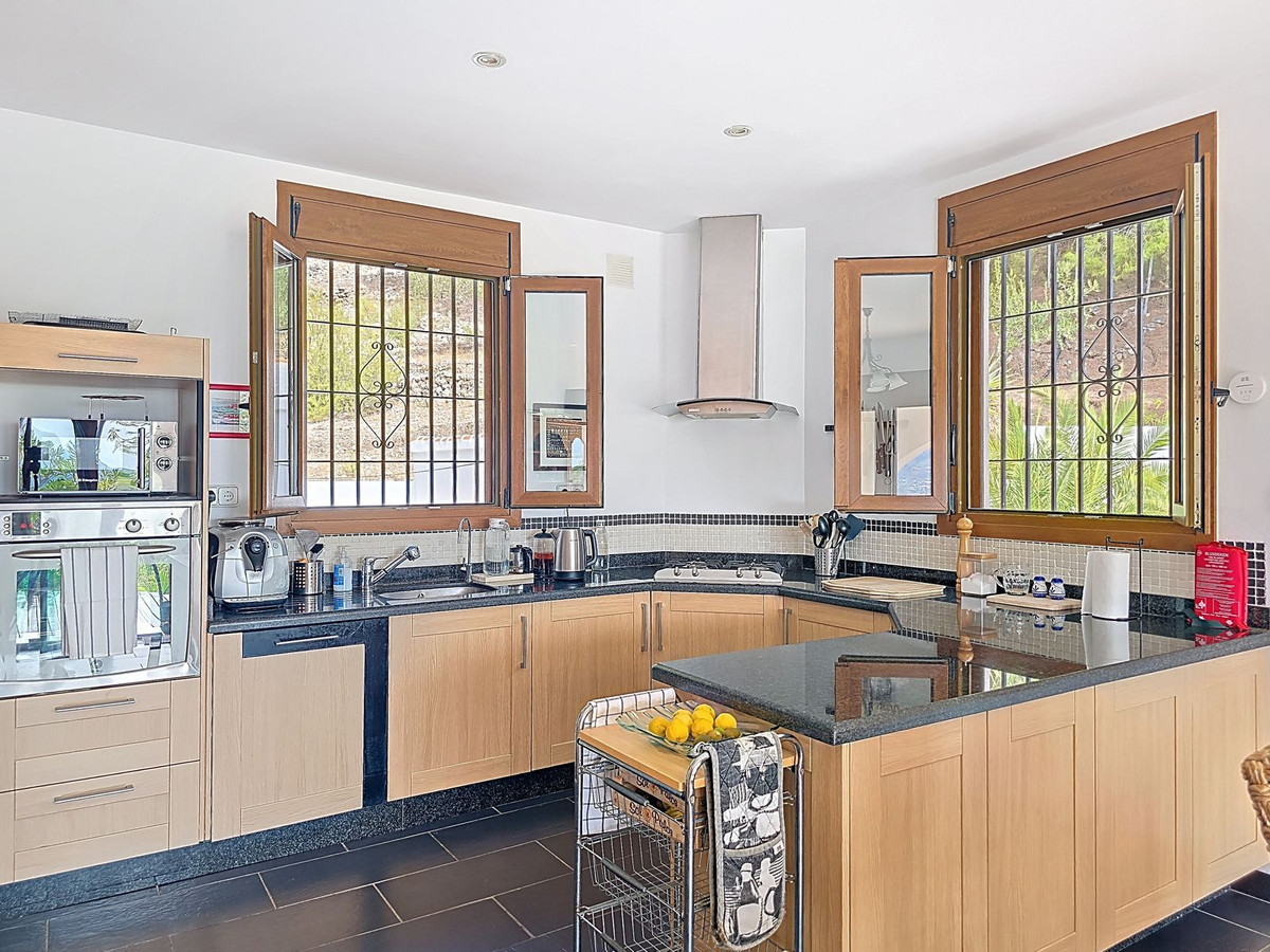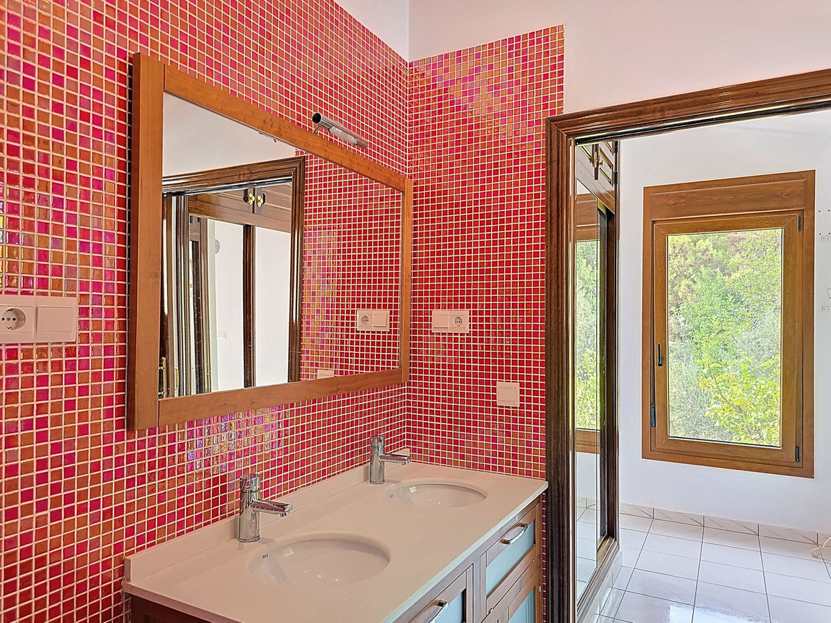 Utendørs finner du alt for den ultimate middelhavslivsstilen: en vakkert anlagt hage, flere solrike terrasser, et oppvarmet saltvannsbasseng og en stilig bar med utekjøkken – ideelt for lange sommerkvelder og for å underholde gjester. Med en sørvendt beliggenhet kan du nyte solen hele dagen og den fantastiske panoramautsikten over det omkringliggende landskapet.