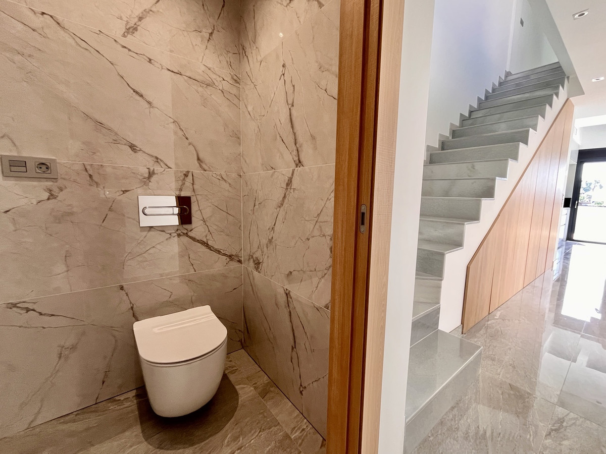 We are excited to present this stunning, unique 3 bedroom, 3bathroom villa located in the highly sought-after San Pedro del Pinatar. This new build property welcomes you with spacious, light-filled bedrooms and a large open-plan kitchen.