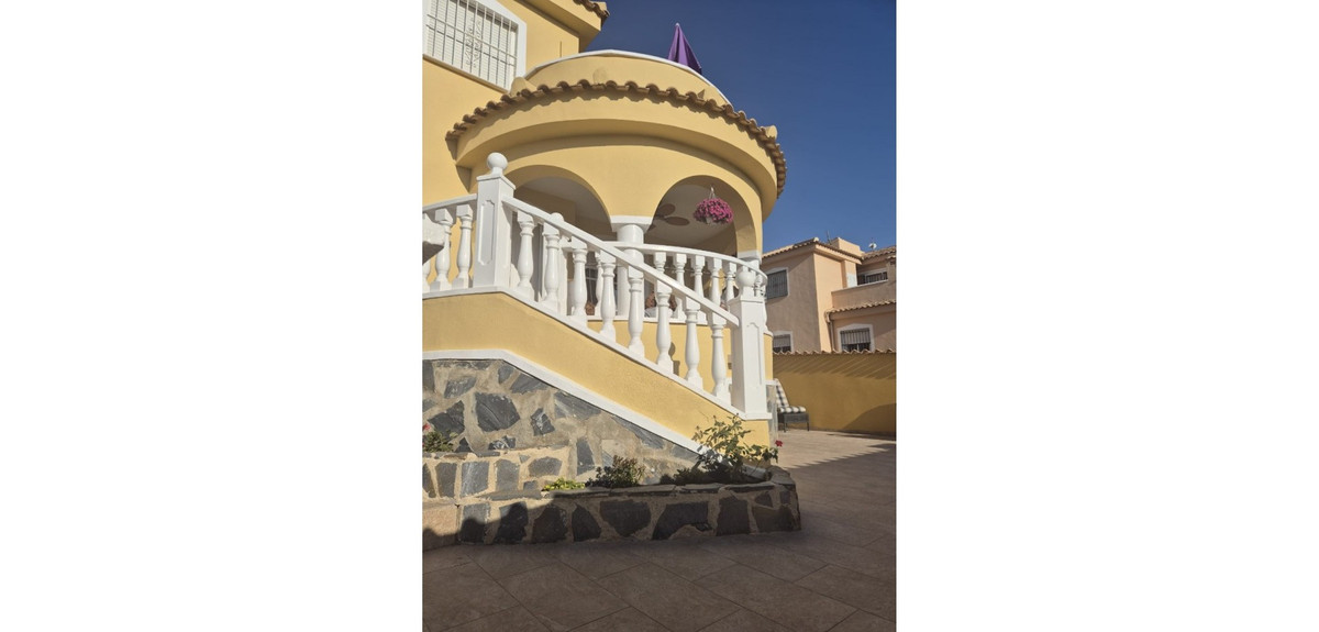 This charming independent villa is located in the highly sought-after area of Ciudad Quesada, set within a peaceful and multinational community of only 43 homes. Positioned on a large corner plot, it offers open views of the lakes, Lo Pepín, and surrounding uncluttered landscapes, creating a tranquil setting.