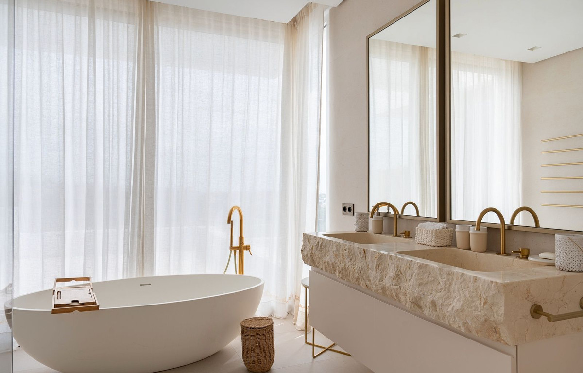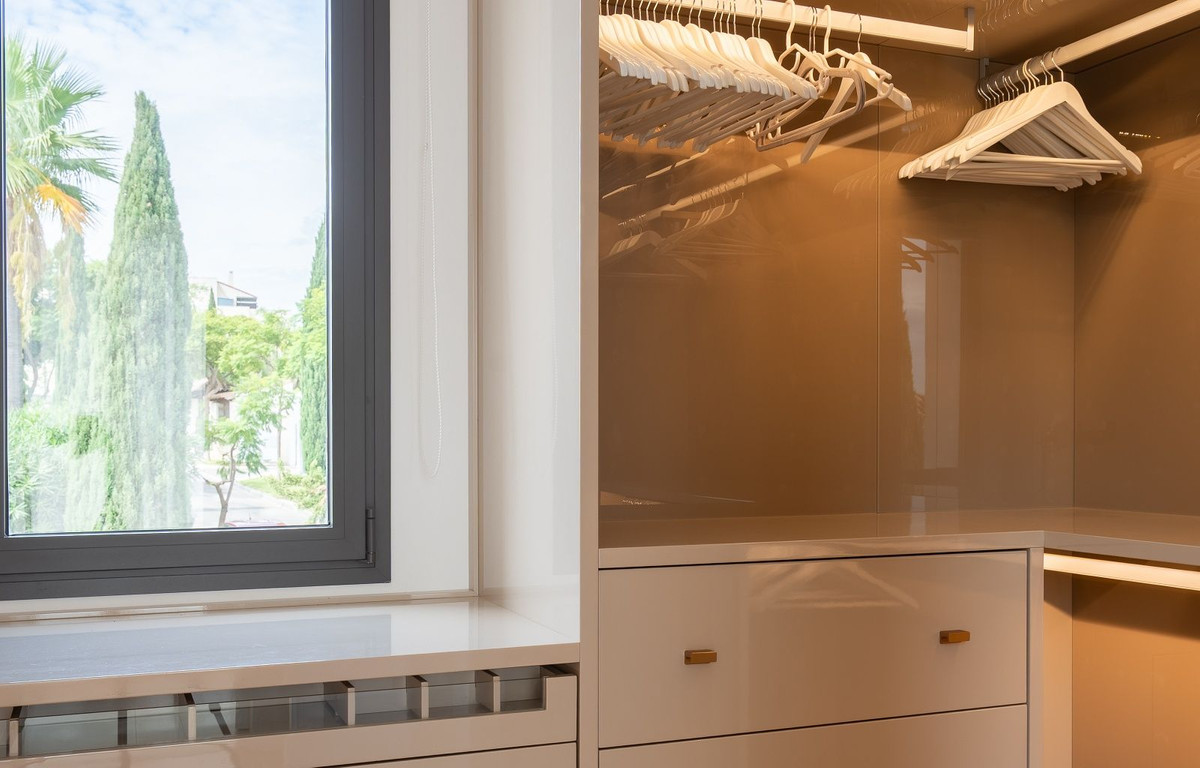 På första våningen finns två ytterligare sovrum, däribland den lyxiga mastersviten med två walk-in-garderober och ett stort badrum med både dusch och fristående badkar. Båda sovrummen har tillgång till en privat terrass med panoramautsikt över havet, golfbanan, La Concha och det omgivande landskapet.