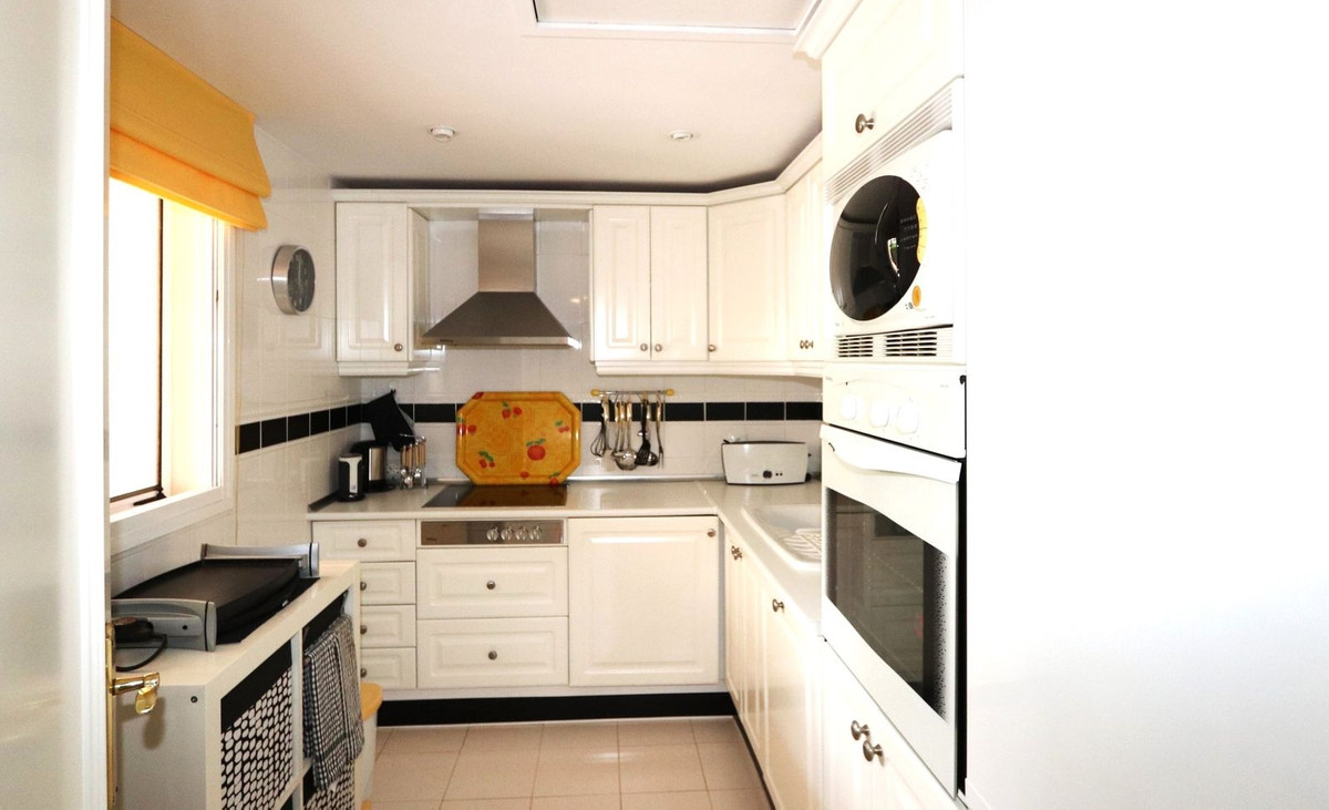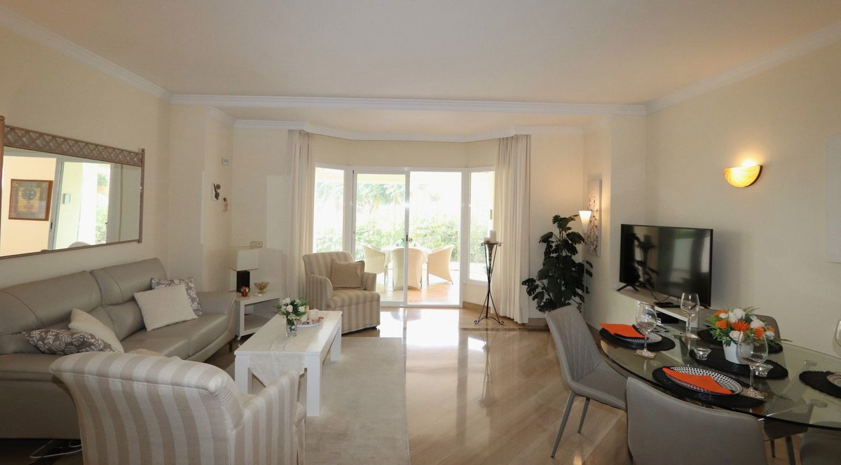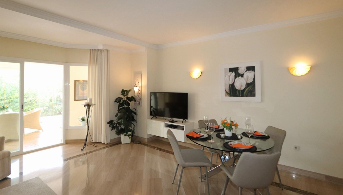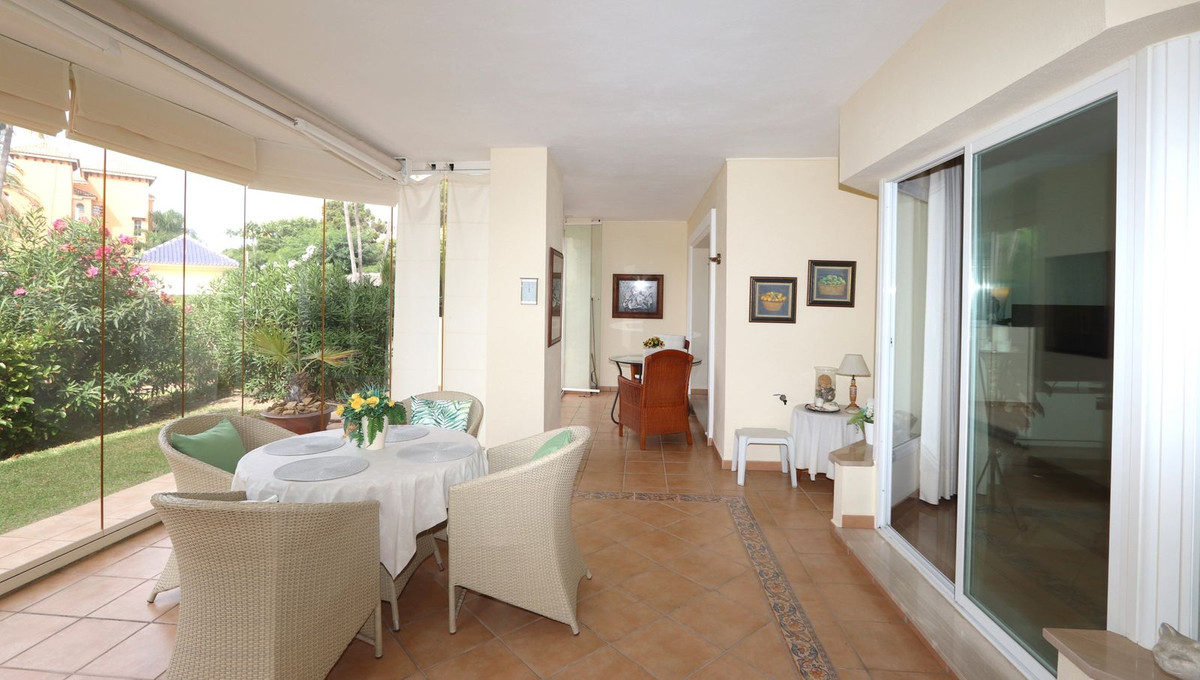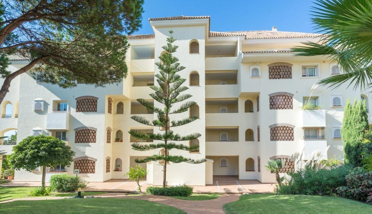Excellent opportunity! Luxury apartment in one of the most sought after residential complexes in Elviria Hacienda Playa. The property is located walking distance to the beach (50 meters) and just a few steps from all services such as restaurants, banks, churches, schools, etc. This south facing apartment with a living area of 106 m2 + 62 m2 terrace consists of 2 bedrooms, 2 bathrooms, fully furnished and equipped kitchen, a large living room and a very sunny terrace. Air conditioning, hot / cold, Well maintained complex with communal gardens and pool. All this surrounded by beautiful tropical gardens. The apartment is in excellent condition and is very well maintained. An ideal option to enjoy life in Marbella right by the sea. The apartment includes an underground parking space and a basement room. 2 bedrooms, 2 bathrooms, living area 106 m2 + 62 m2 terrace, south facing. Built in 2002. This is the perfect home for a permanent holiday stay. Its position and features make it very attractive on the rental market.