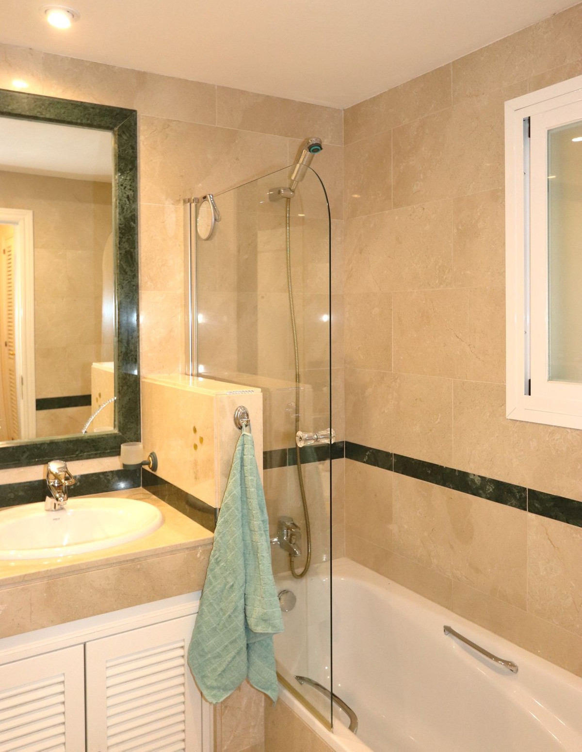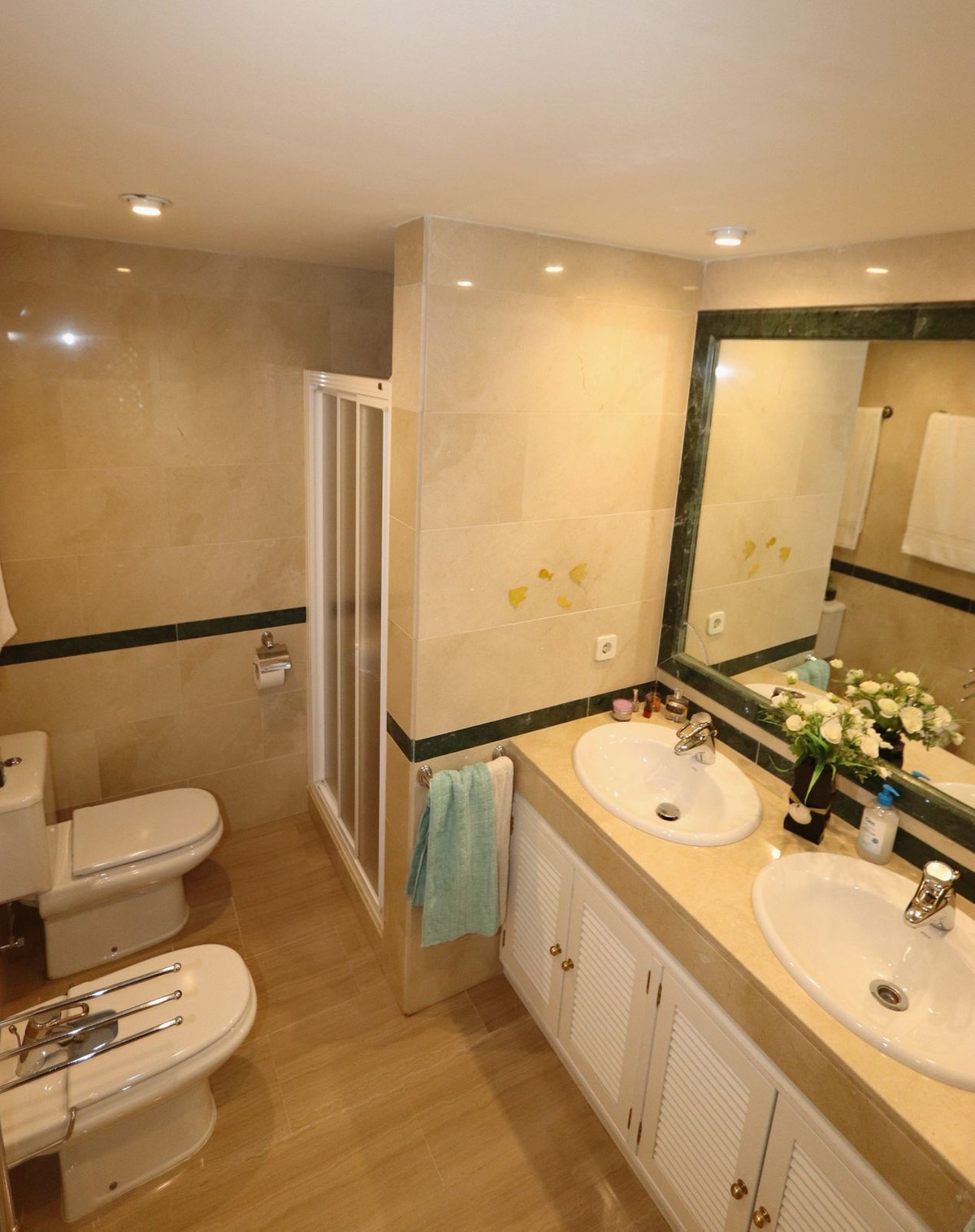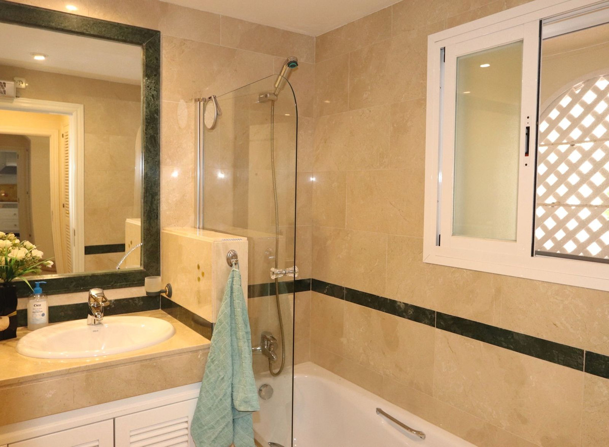 Excellent opportunity! Luxury apartment in one of the most sought after residential complexes in Elviria Hacienda Playa. The property is located walking distance to the beach (50 meters) and just a few steps from all services such as restaurants, banks, churches, schools, etc. This south facing apartment with a living area of 106 m2 + 62 m2 terrace consists of 2 bedrooms, 2 bathrooms, fully furnished and equipped kitchen, a large living room and a very sunny terrace. Air conditioning, hot / cold, Well maintained complex with communal gardens and pool. All this surrounded by beautiful tropical gardens. The apartment is in excellent condition and is very well maintained. An ideal option to enjoy life in Marbella right by the sea. The apartment includes an underground parking space and a basement room. 2 bedrooms, 2 bathrooms, living area 106 m2 + 62 m2 terrace, south facing. Built in 2002. This is the perfect home for a permanent holiday stay. Its position and features make it very attractive on the rental market.