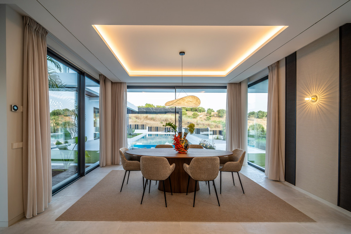 Denna villa är en unik möjlighet, inflyttningsklar och perfekt belägen i El Paraíso Alto, Estepona. Utformad som ett samtida mästerverk, kombinerar den elegans med funktionalitet och erbjuder premiumfinish i varje detalj.