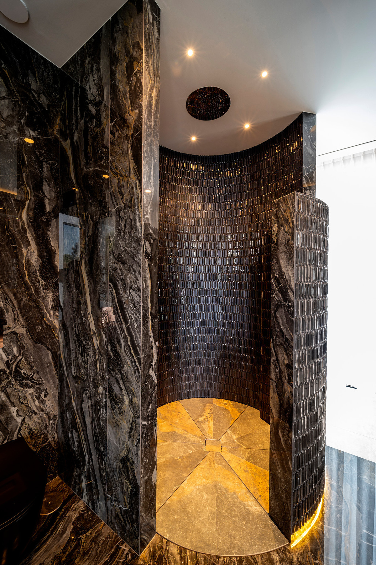 När du kliver ut möts du av en vacker trädgård och rymliga terrasser, perfekta för avkoppling eller sociala tillställningar. Höjdpunkten är infinitypoolen med vattenfall. Utomhus finns även ett fullt utrustat utekök för middagar under stjärnorna.