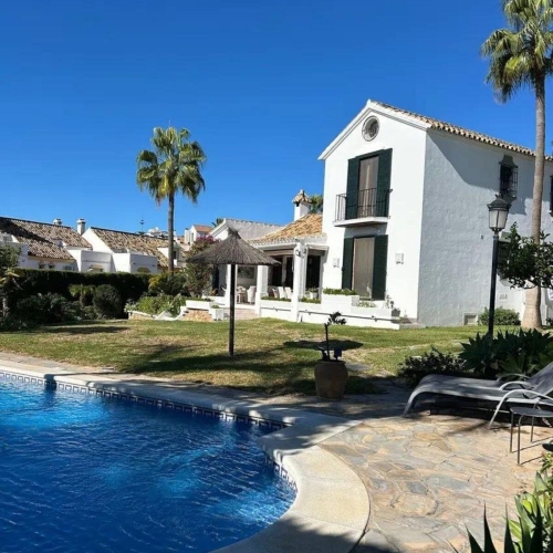 Imponerande lyxig villa i andalusisk stil vid Atalaya -stranden, några steg från stranden.