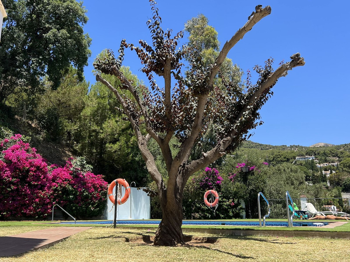 Entrance hall. Lounge-dining room with A/C h+c, ceiling fan and sliding doors to enclosed sunny terrace with folding glass curtains. Shower room. Master bedroom with wardrobes and sliding doors to the enclosed terrace. This sunny enclosed terrace could be a reading room or study if needed. Double glazing. Roller blinds. Marble floors. Ceiling fans. Guest bedroom also has fitted wardrobes. Full bathroom. Fully fitted kitchen with glass-ceramic hob, fridge-freezer, oven, extractor fan and granite counter-top. Small front patio has spiral stairs that lead up to spacious ROOF-TOP TERRACE with those outstanding PANORAMIC views to the whole coast. There are new storage units, an outdoor shower, and plenty of space for BBQ and dining "al fresco"– a great place to chill out. Communal swimming pool, well-maintained gardens and a designated parking space. All within a peaceful gated complex only a short walk from Mijas center. Walking distance to all amenities. Near bus stop. VIEWINGS RECOMMENED!