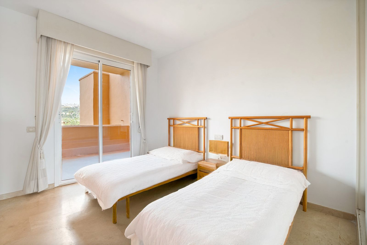 Fantastic first-floor apartment in one of Manilva's most exclusive beachfront complexes, Los Granados de Duquesa. It offers three spacious bedrooms and two bathrooms. The master bedroom has an en-suite bathroom and direct access to a terrace with sea views, while the second bedroom enjoys another southwest-facing terrace that brings plenty of natural light. The property also features direct access to the beach and promenade, 24-hour security with video intercom and CCTV, as well as individual air conditioning in every room. The community offers a swimming pool and tropical gardens, and the apartment includes a private underground parking space. Just a short walk from La Duquesa marina, this is a unique opportunity to enjoy the Mediterranean lifestyle in an unbeatable location.
