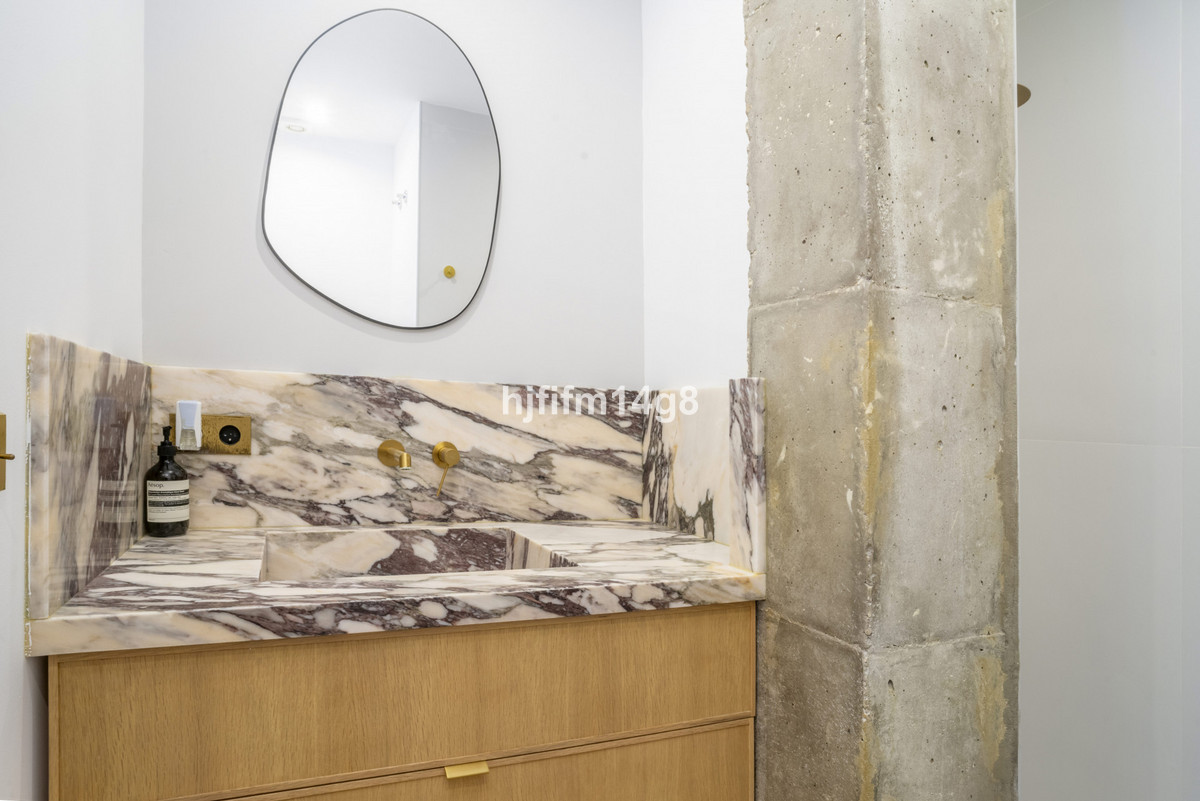 Lägenheten erbjuder tre rum och två badrum, alla noggrant renoverade med material av hög kvalitet och moderna ytskikt. Det tredje rummet är för närvarande inrett som kontor men kan enkelt återställas till ett sovrum vid behov, vilket ger värdefull flexibilitet.