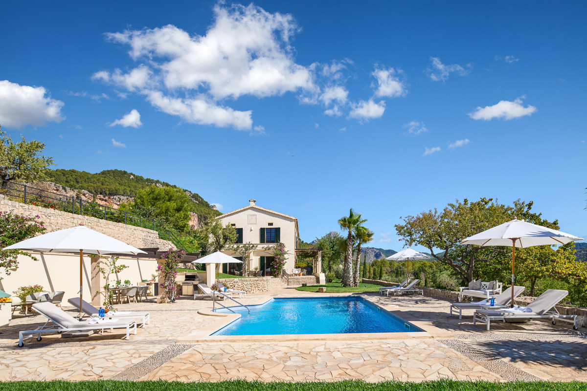 Finca Sa Coma är en extraordinär lyxegendom till salu i den fridfulla byn Es Capdella, som förenar den mallorkinska kulturarvens elegans med modern livsstils sofistikering. Fastigheten var en av de ursprungliga herrgårdarna i området och har totalrenoverats 2024, där dess tidlösa karaktär bevarats samtidigt som exklusiva materialval och samtida bekvämligheter införts. Belägen på en upphöjd tomt erbjuder fincan vidsträckta vyer över de frodiga bergen som kännetecknar detta eftertraktade hörn av Calvià.