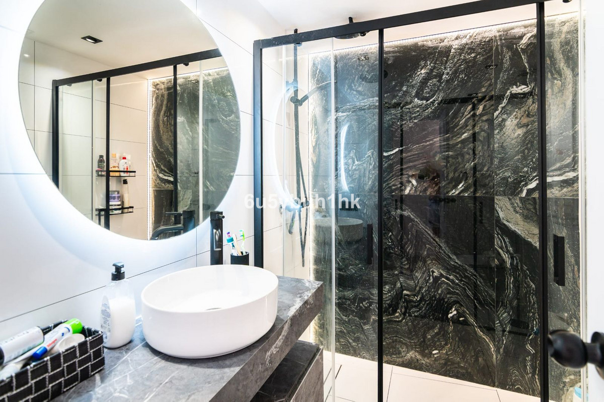 El Paraiso – Just steps behind the chic D-Alicia Café and only 300 m from serene, almost-private beaches, this avant-garde three-bedroom, two-bathroom penthouse embodies modern Mediterranean sophistication. Encompassing approximately 155 m², it showcases bold, gallery-style interiors where striking black-and-white contrasts, wood floors, and abundant natural light create an ever-changing exhibition of style. A sleek black-granite kitchen flows seamlessly into an open living-dining area designed for chic entertaining, while two spa-inspired baths—one featuring a deep soaking tub—offer indulgent comfort. Crowned by a private Saltillo-tiled rooftop terrace, the residence invites sunset dinners, starlit gatherings, and effortless al-fresco living. Surrounded by acclaimed restaurants, wine bars, and designer boutiques, this penthouse is more than a home: it's a curated lifestyle for the sophisticated buyer seeking elegance, edge, and everyday inspiration.