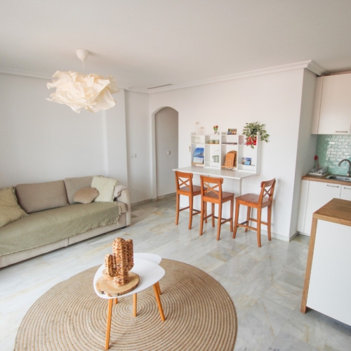 Från samtliga sovrum och vardagsrummet, har du en fantastisk utsikt över Medelhavet. Från den stora terrassen, har du dessutom en underbar utsikt över de omkringliggande bergen. Strax utanför ingången till byggnaden där lägenheten ligger, ligger Torrox Costa´s vidsträckta sandstrand och strandpromenad. Supermarkets, restauranger, banker och övrig allmänservice ligger runt hörnet. Kort sagt, bättre läge kan du inte få.