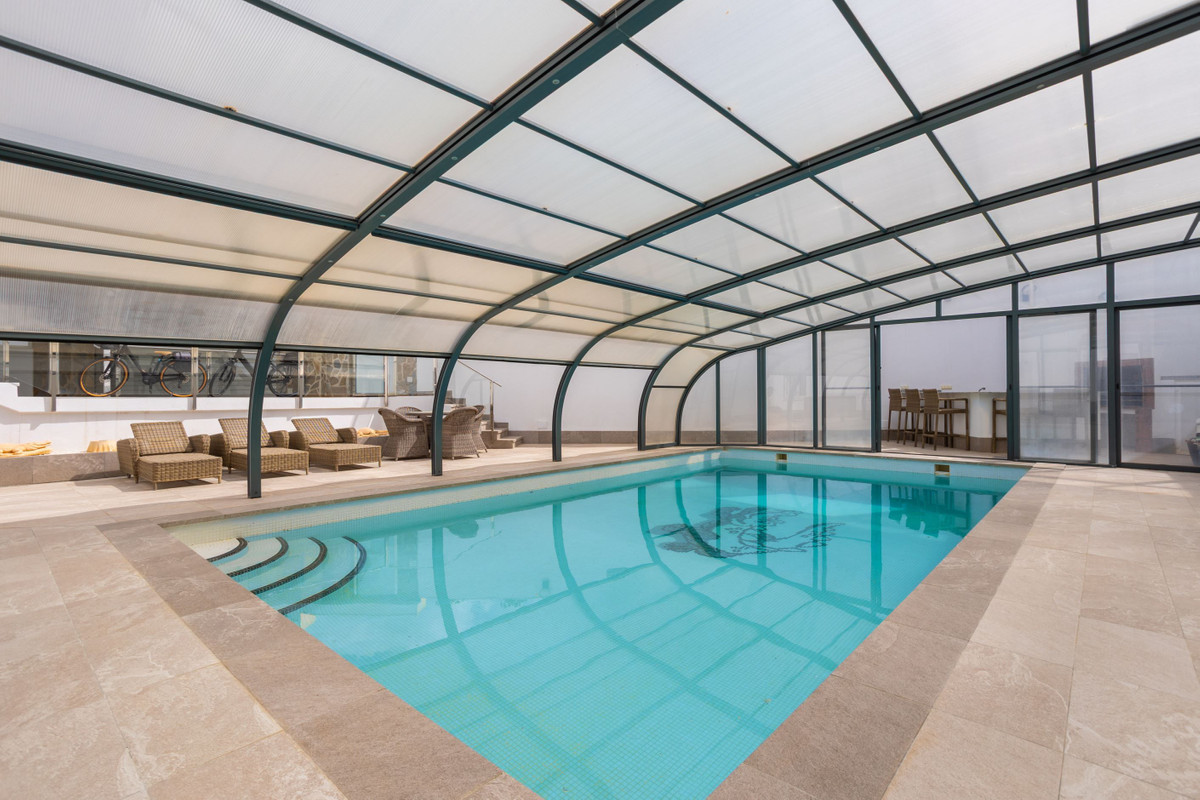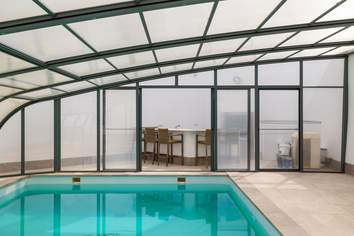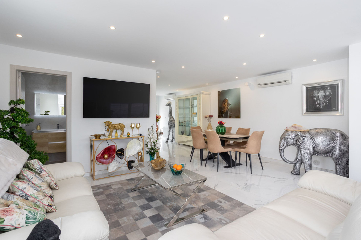 Till detta kommer en rymlig tomt med en uppvärmd pool och en stor terrass med plats för utemöbler.