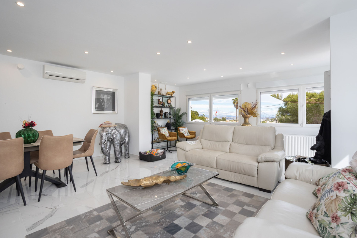 Vardagsrummet har en inbjudande känsla med plats för sällskapsdel och matplats.