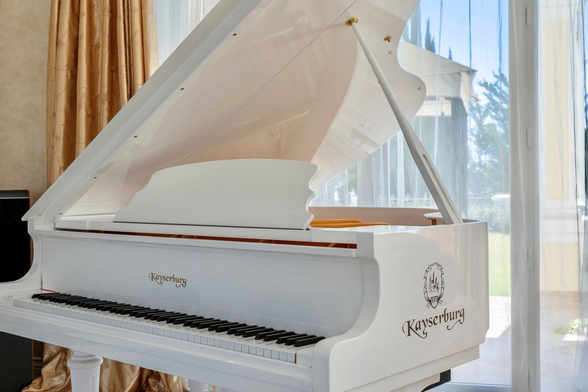 The villa features 4 bedrooms and 4 bathrooms, a bright and airy living space, and a fully equipped modern kitchen. Expansive windows flood the interiors with natural light, creating a fresh and inviting atmosphere throughout.