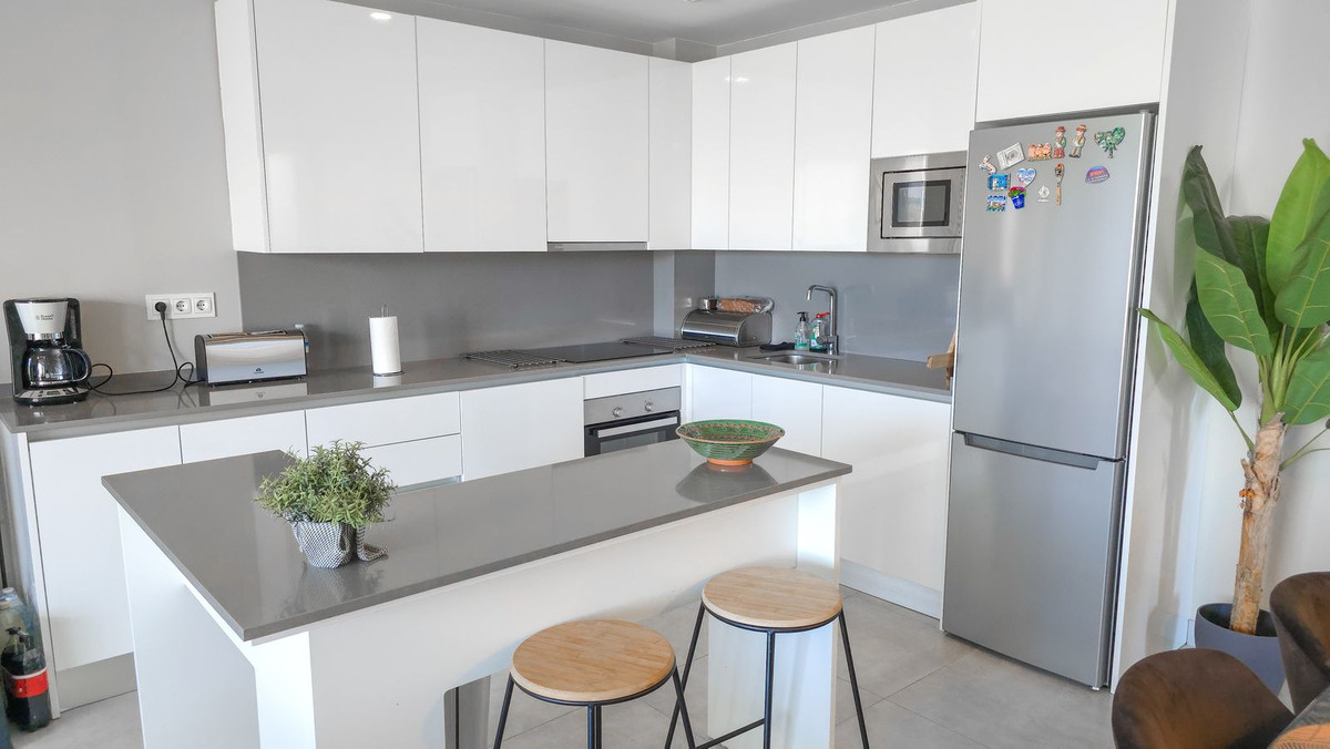 Lägenheten ligger i ett upphöjt läge över La Cala de Mijas och har panoramautsikt över staden, landskapet och Medelhavet. Den öppna planlösningen är ljus och modern med stora fönsterpartier och direkt tillgång till de rymliga terrasserna. Det generösa köket och matsalen är integrerade med vardagsrummet, vilket skapar en perfekt miljö för både vardagsliv och sociala tillställningar.