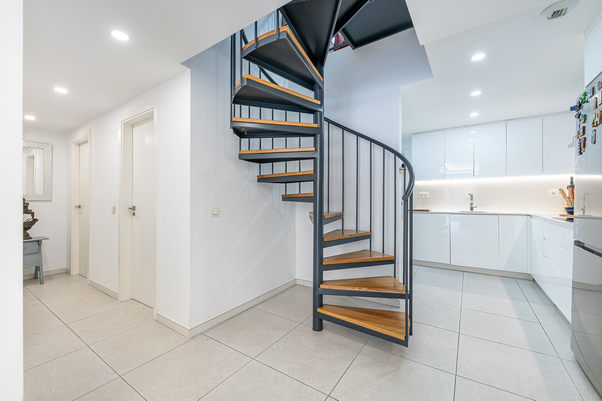 Climb the elegant spiral staircase and discover the real gem of this penthouse: a versatile 17 m² upper space ideal as a second living room, office, or future bedroom, which includes a toilet and loft.