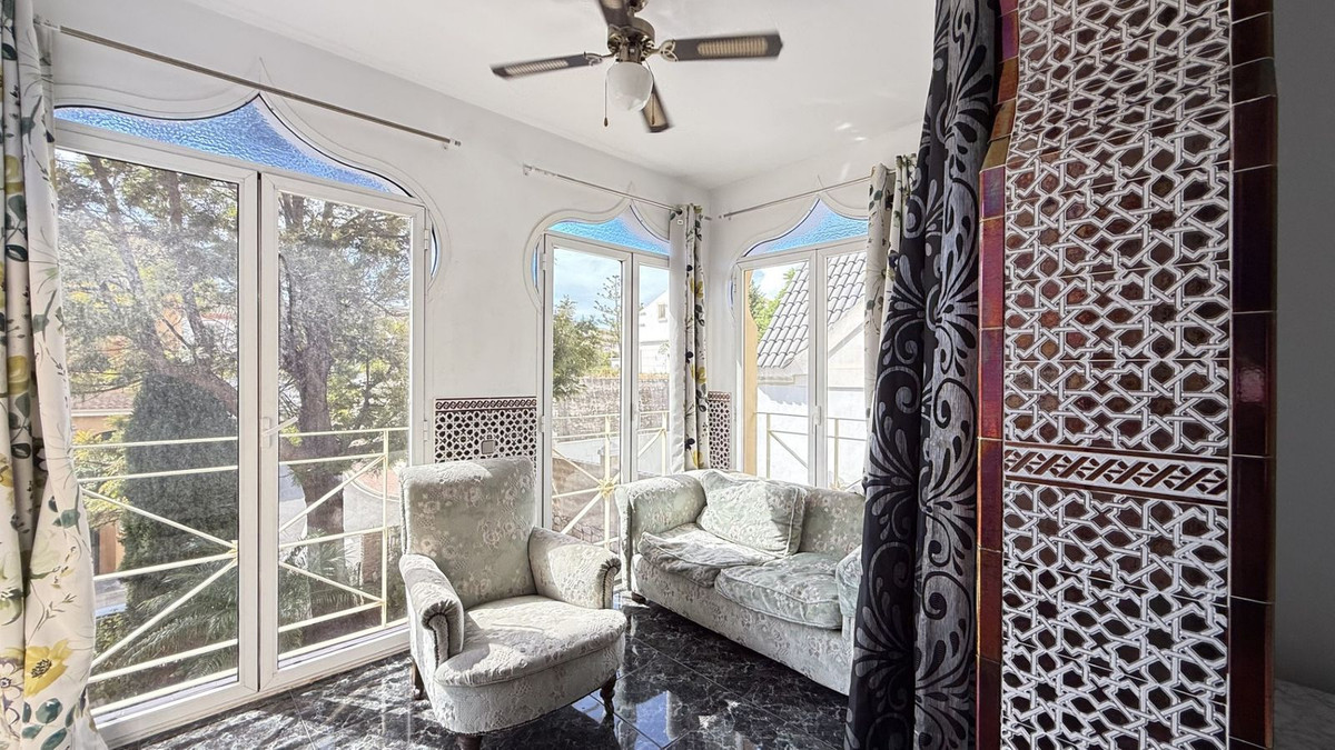 Unique Moroccan-Style Villa with Charm, Space & Character. A truly rare opportunity to own a one-of-a-kind Moroccan-style villa, beautifully renovated (except the kitchen) with meticulous attention to detail while preserving its authentic charm. Located within walking distance to all amenities, this spacious property offers both timeless elegance and modern comfort. The villa features 5 generous double bedrooms and 4.5 bathrooms, with two of the bedrooms enjoying attached rooms ideal for a home office or study. The top two bedrooms are exceptionally large, perfect as private retreats. There is a private heated swimming pool, mature fruit trees. Inside, the air-conditioned villa includes a basement entertainment level with a home cinema, pool table, and table tennis area. While the kitchen awaits a personal touch, the rest of the home has been recently renovated to a high standard. The property also includes a private garage and holds a tourist rental license, adding investment potential to its unique lifestyle offering. A truly special home full of personality, space, and style ready to be enjoyed as a private residence or luxury holiday retreat or rentals. If you want to update the house or even change the layout of the house, our in-house interior architects Dante and Isabella, will help you redesign it to your unique taste, free of charge when you buy with us.