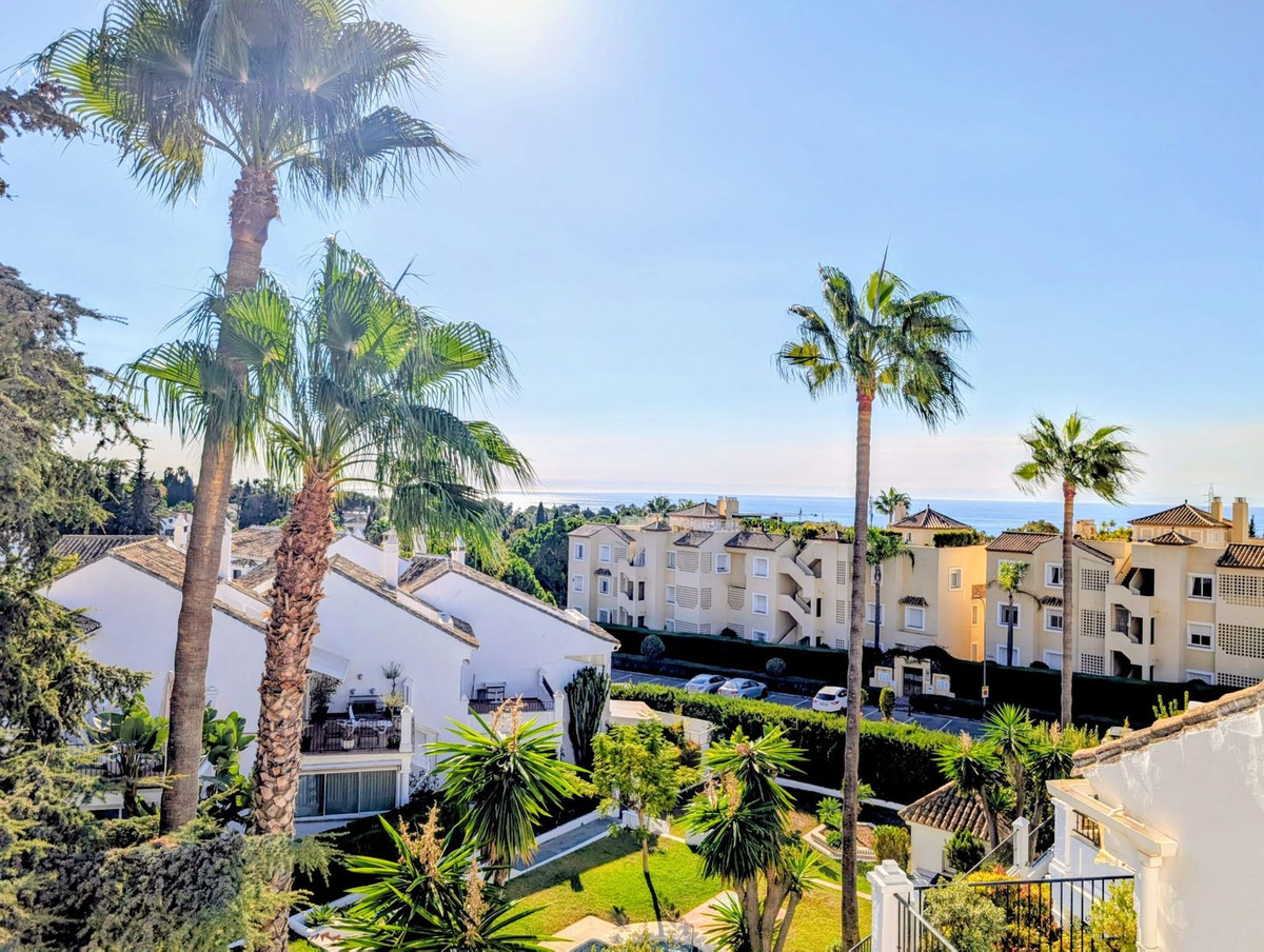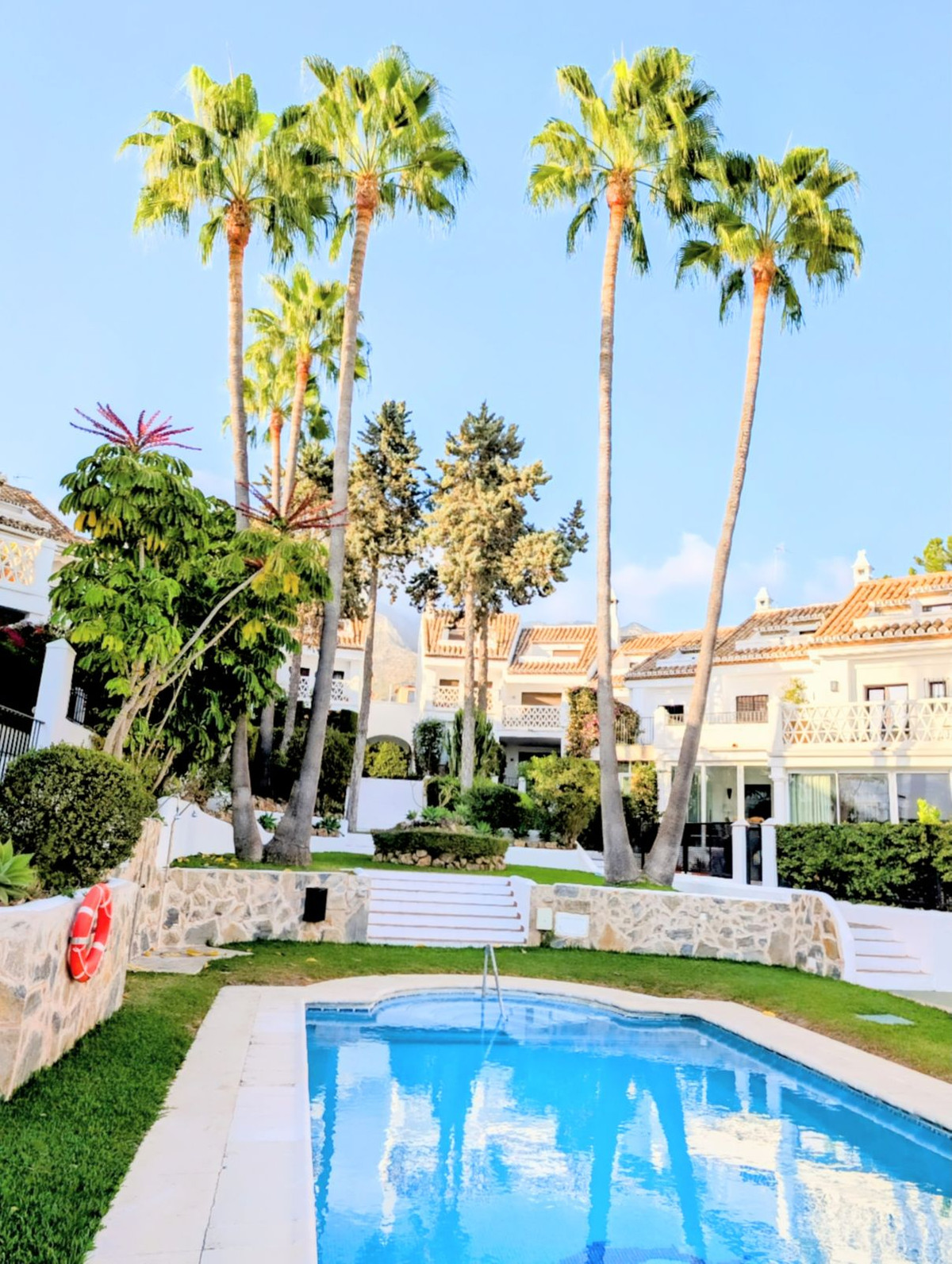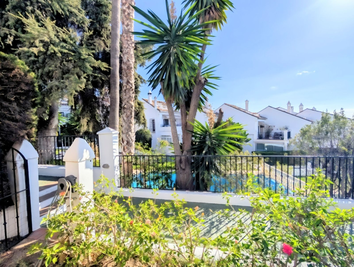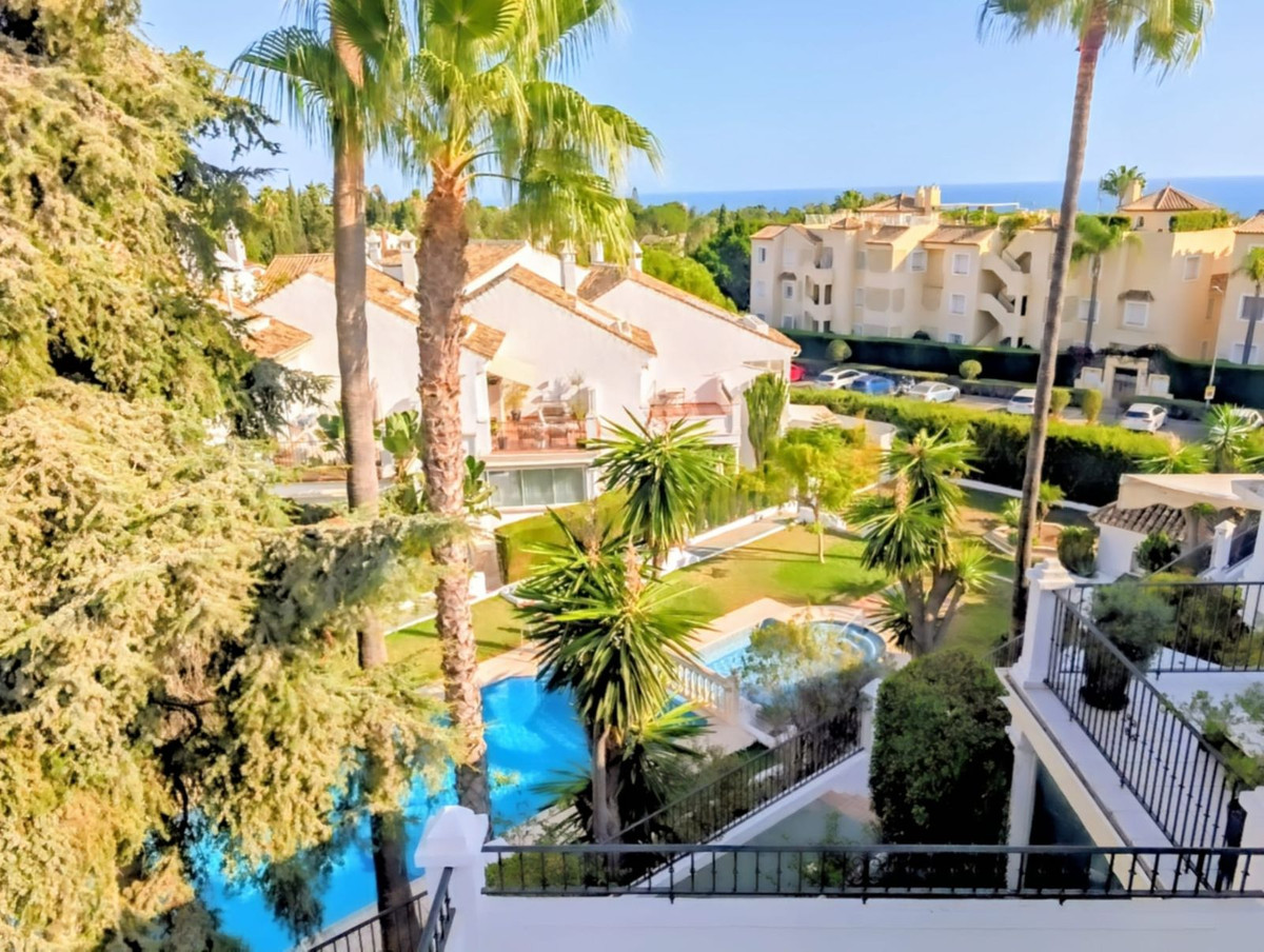 Most charming Mediterranean style corner townhouse in gated residential community Montepiedra above the Golden Mile of Marbella. Built over three levels, with private garden and magnificent views from both upper levels. Would benefit from updating/refurbishment and will make fantastic family home. Peaceful & quiet residential area very close to Marbella, excellent connection to AP7 and short drive ( or 20min walk) to the beach. Excellent value for money on today's market.
