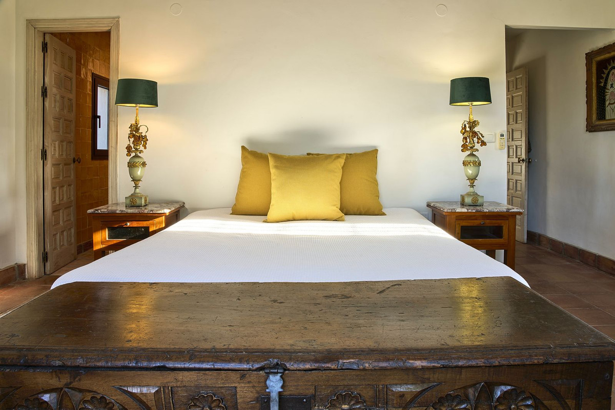 Den andalusiska haciendan består av nästan 500 m² byggnadsyta och cirka 8 000 m² mark. Den har totalrenoverats med god smak och kärlek och förfinats under två decennier. Den rymmer upp till 10 gäster med 5 rymliga sovrum, 4 badrum och en extraordinär känsla av lugn och karaktär. Inspirerad av de moriska palatsen i Granada och den tysta majestätiska klosterarkitekturen, erbjuder fastigheten en unik blandning av lugn enkelhet och överdådiga detaljer.