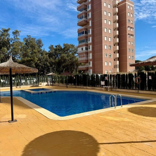 This East Facing, Two Bedroom, First Floor Apartment in Guardamar del Segura is located close to the heart of this popular coastal town. The stunning beach and promenade, lined with plenty of café bars and restaurants, are just a 5 minute drive away, with a supermarket only a 5 minute walk. La Marquesa golf course at Rojales, can be reached in around 10 minutes by car. The apartment offers a bright and comfortable living space, with an air conditioning unit and double sliding glazed doors that lead out to a private terrace overlooking the communal pool. There is a separate fitted kitchen, two double bedrooms – the master with built-in wardrobes and its own air conditioning unit – plus a family bathroom. Additional features include lift access within the block, a communal solarium, and an allocated parking space. An ideal opportunity as a holiday home, investment, or permanent residence in the sought-after area of Guardamar del Segura on the Costa Blanca South.\n
