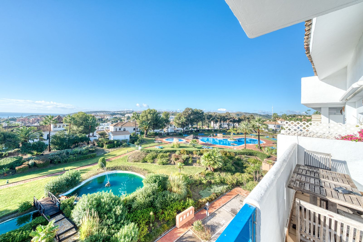 This impressive four-bedroom duplex penthouse is set within a highly sought-after 24-hour secure community in La Duquesa, offering exceptional value and breathtaking views. Beautifully maintained and generously proportioned, the property combines space, comfort, and an enviable coastal lifestyle. The apartment features four well-sized bedrooms and three bathrooms, including a master suite with en-suite facilities. The open-plan living and dining area leads onto a large terrace overlooking the landscaped gardens, swimming pool, and the sea beyond. Two additional terraces provide further outdoor space, with stunning south-westerly and north-easterly views across the Marina of La Duquesa.
