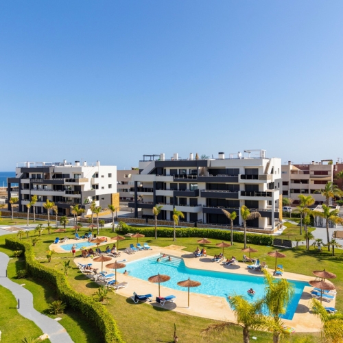 Stunning frontal sea views from large terraceSecond floor apartment for €340.000Discover this spectacular beachfront apartment, a unique opportunity for those who value a privileged location and unbeatable views. Located on the second floor, the property offers stunning sea views that can be enjoyed both from inside and from its large terrace, making it the perfect place to relax, have breakfast or watch the sun rise over the Mediterranean. 120 metres from the beach.The property has approximately 135 m² distributed over 3 spacious bedrooms, 2 full bathrooms, a bright living-dining room and a fully equipped separate kitchen. The east-facing orientation guarantees excellent light throughout the morning, bringing warmth and well-being to the spaces.The apartment is located in a recently renovated residential complex that includes a communal swimming pool, green areas, new lifts and accesses adapted to current regulations. It is also equipped with air conditioning to ensure maximum comfort throughout the year.Its location in Playa Flamenca is another of its great attractions. It is just a short walk from supermarkets, restaurants, cafés and all kinds of services, and very close to the Zenia Boulevard shopping centre, one of the largest in the province with a wide range of shops, leisure and dining options.The area also offers numerous leisure and tourism activities blue flag beaches, internationally renowned golf courses such as Villamartín, Las Ramblas and Campoamor, water sports, hiking trails, natural parks and local markets, such as the Saturday market.Playa Flamenca is one of the most sought-after areas of Orihuela Costa, perfect for a permanent residence or investment. Don´t miss the opportunity to live with exceptional sea views and all the comforts this magnificent property has to offer.IBI €340Price €349,900.