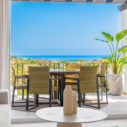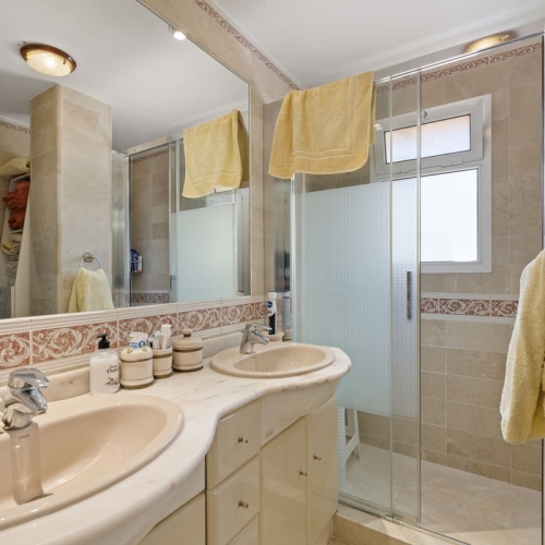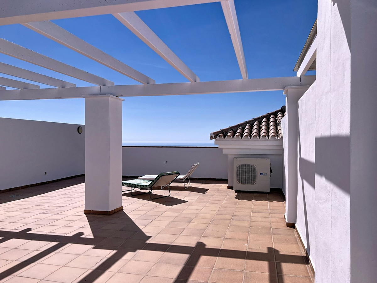 Modern penthouse located in one of the most desirable residential areas of Rincón de la Victoria. Built in 2015, this property offers an exceptional combination of comfort, privacy and contemporary design. The apartment features two bedrooms and two bathrooms, including a master suite with an ensuite bathroom and direct access to the spacious terrace with open sea views. One of the bathrooms includes a whirlpool bathtub, and both benefit from underfloor heating. The bright and airy living-dining area connects seamlessly with the terrace, creating an ideal space to relax and enjoy the Mediterranean climate. From the terrace, an external staircase leads up to a large private solarium perfect for sunbathing, entertaining or admiring the panoramic coastal views. Additional features include air conditioning with heating, fly screens on all windows, a wall safe, and an alarm system. The residential complex is fully fenced and secured, and offers outstanding communal facilities including three swimming pools and two padel courts, surrounded by beautifully maintained gardens. The property also includes two private parking spaces and a storage room. Ideally located just 20 minutes from Málaga and 30 minutes from the airport, and close to the beach and all amenities, this penthouse is an ideal choice for year-round living or as a second home on the Costa del Sol. We are pleased to be able to present this dream property to you soon, either personally or via virtual viewing. Because this world is unique - just like our Axarquía. In Andalusia. On the Costa del Sol. Here, on the sunny side of life...