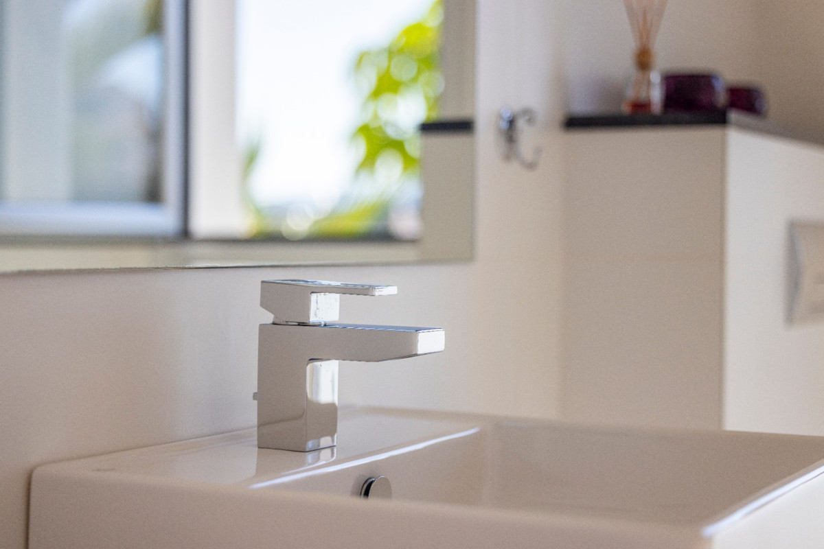 Huvudvåningen har en ljus, öppen planlösning med ett modernt kök, vardags- och matplatser som öppnar direkt mot poolterrassen genom stora glasdörrar, vilket ger naturligt ljus hela dagen. Denna nivå erbjuder också tre rymliga sovrum, alla med egna badrum och en klädkammare.