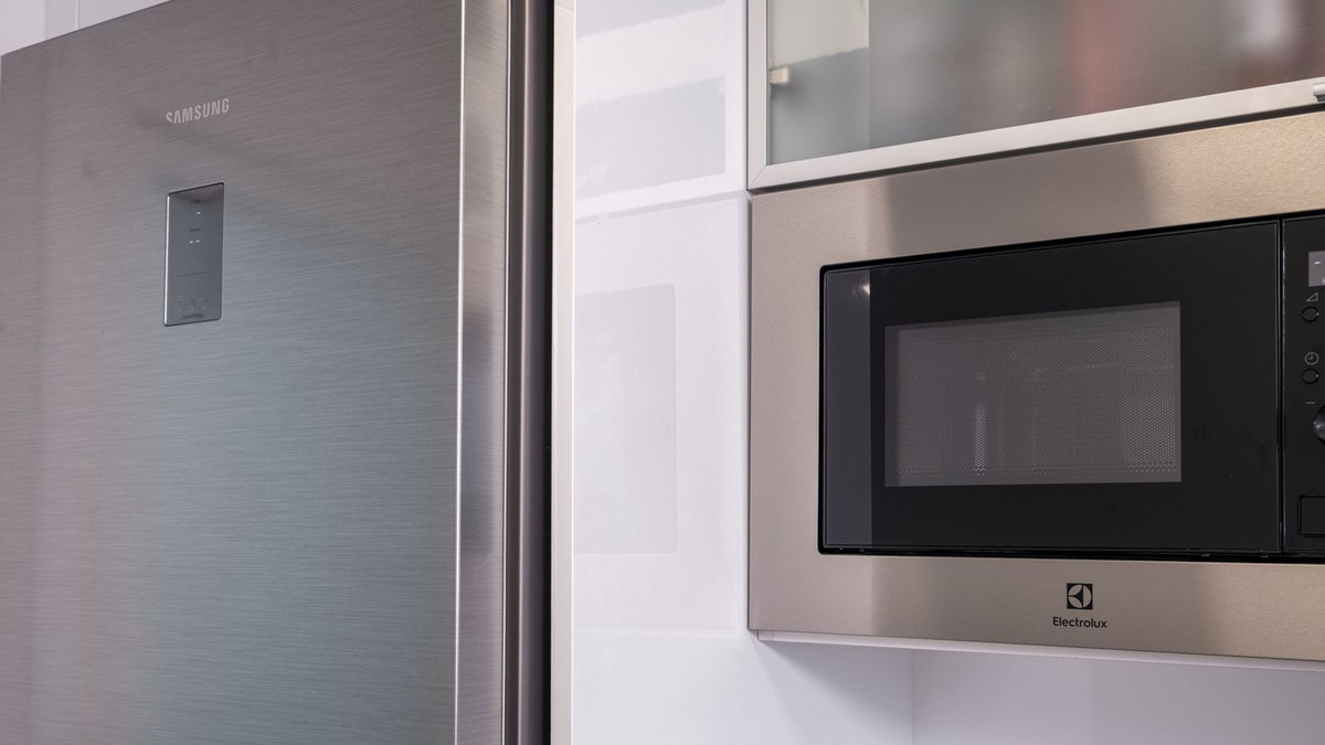 The open-plan kitchen comes fully equipped with modern, high-quality appliances. Adjacent to the kitchen is a separate laundry room with a washing machine, dryer, water heater, and a complete water filtration system that makes all tap water drinkable and free from limescale. The apartment also includes a practical storage room with ample space for suitcases, golf equipment, or other belongings.