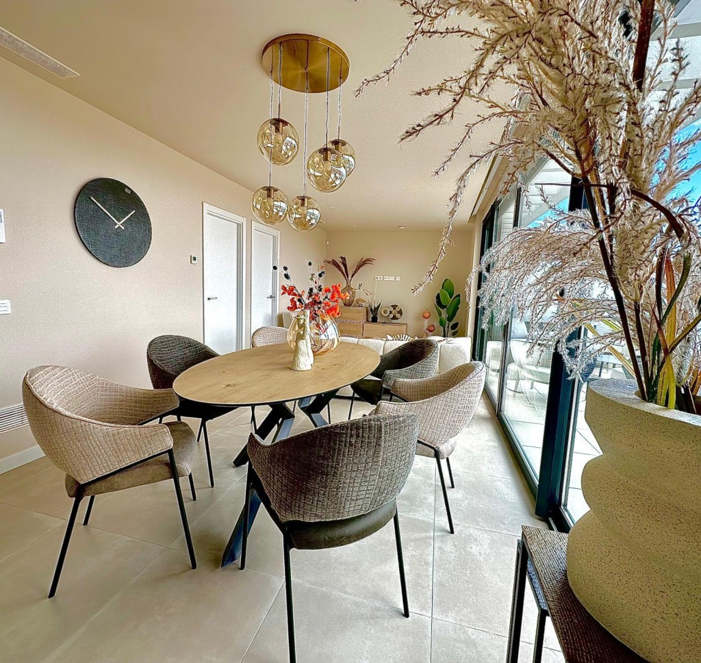 New built modern style penthouse in El Higueron en Fuengirola with two bedrooms and one bathroom, open plan kitchen, living room and with stunning terrace with panoramic sea views, sold furnished with quality furniture and including an exterior parking space, an underground parking space and a storage room. Air conditioning hot and cold via aerothermia, electric blinds in the living room, dim switches in all rooms, tv and internet connections in the living and bedrooms, underfloor heating and special tiles and rain shower in the bathroom. Gated complex with pools and facilities. The beach is a 15 minute walk away.