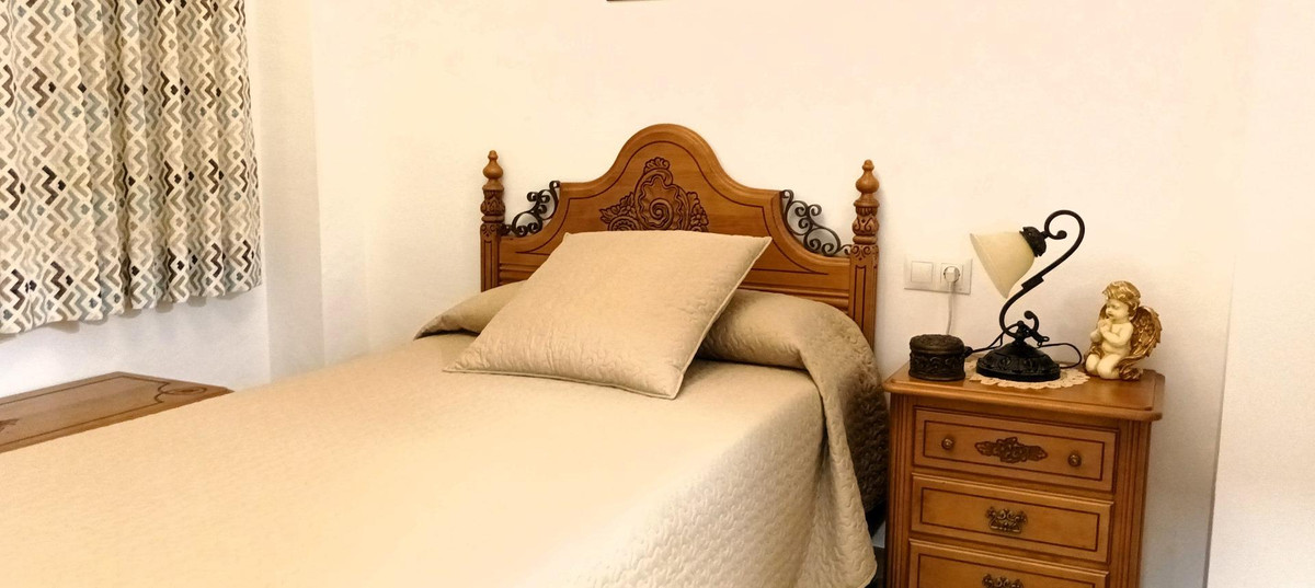 Apartment in the center of Estepona, just 800 meters from the beach. It has one double and one single bedroom, one bathroom, and a fully equipped kitchen. It also has extras such as air conditioning, built-in wardrobes, and a communal pool.