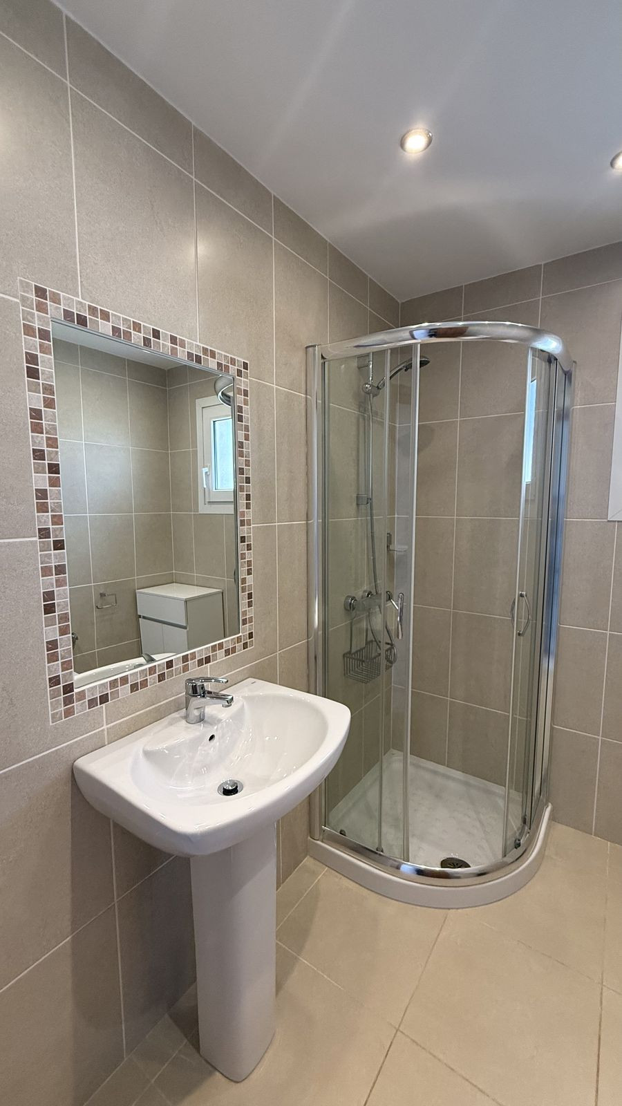 Den består av tre rymliga sovrum och två fräscha badrum, vilket gör den idealisk både som permanentboende och semesterbostad.