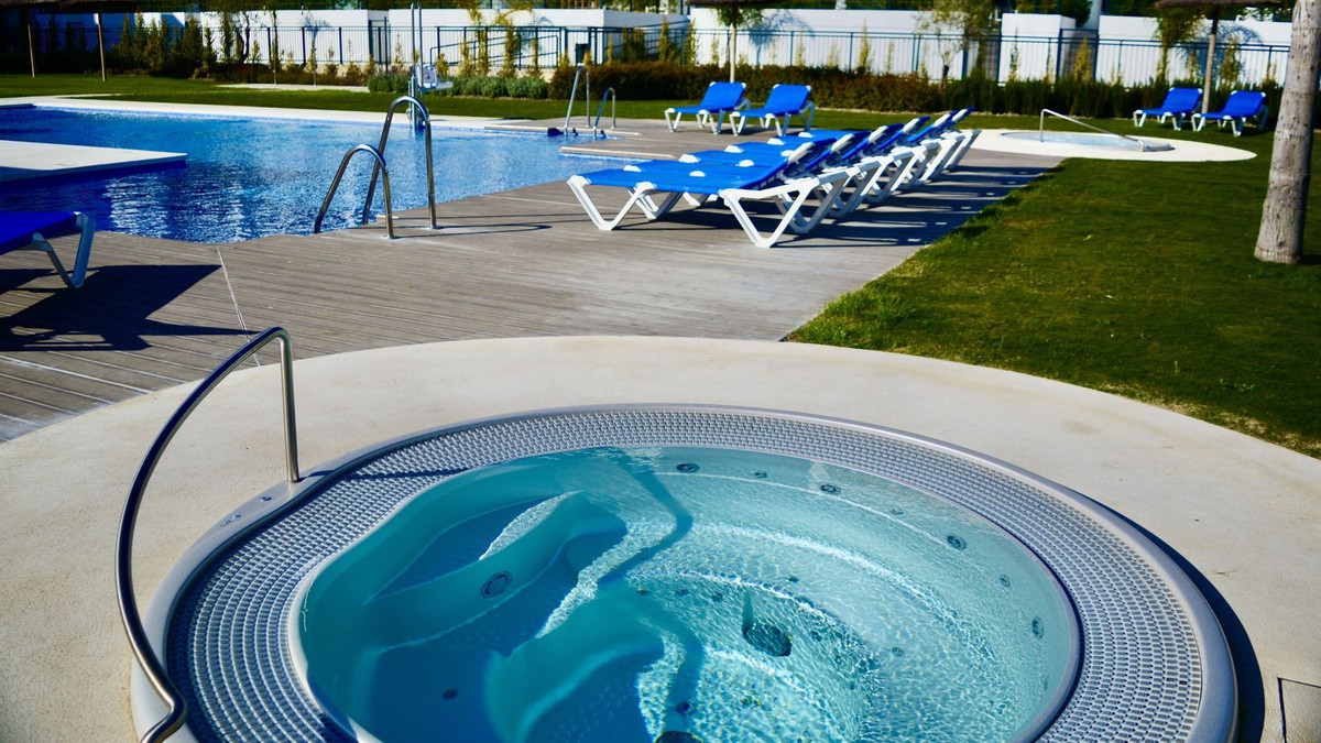 The garden connects directly to the tranquil communal areas featuring beautifully landscaped Mediterranean gardens, swimming pools, jacuzzis, and a children's play area.