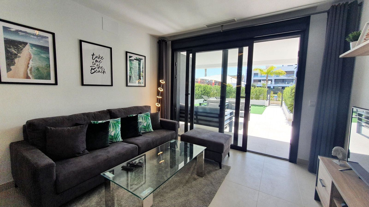 This stunning ground-floor apartment in Los Miradores del Sol Phase I perfectly combines contemporary luxury with Mediterranean indoor-outdoor living on Estepona's exclusive New Golden Mile. Offering 92 m² of elegant interior space and an impressive 84 m² of private terraces and gardens, it's ideally located just a short walk from the beach, shops, and restaurants.