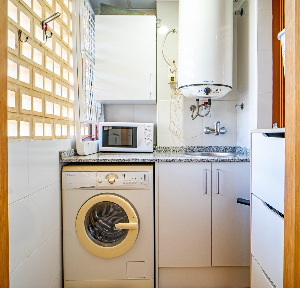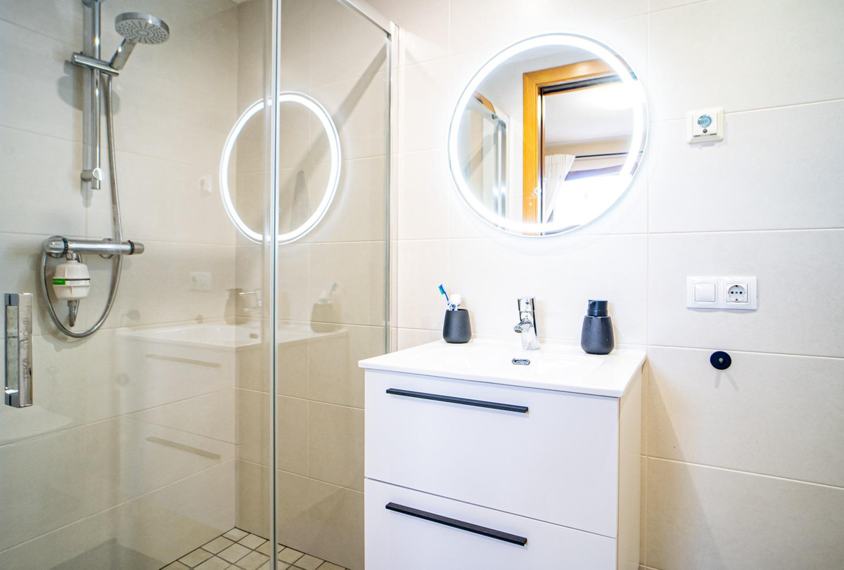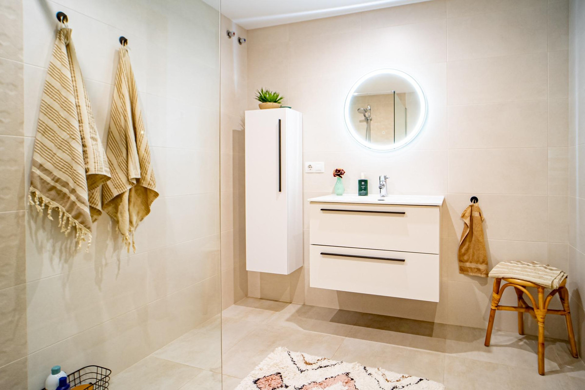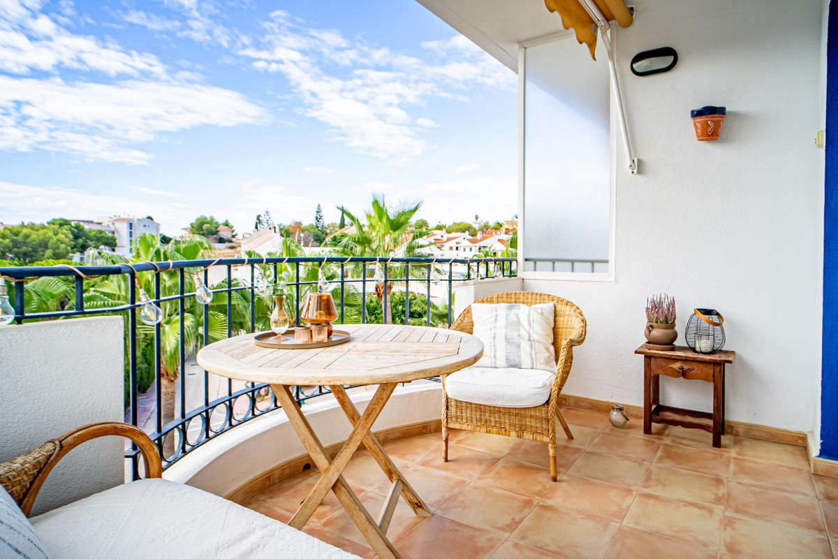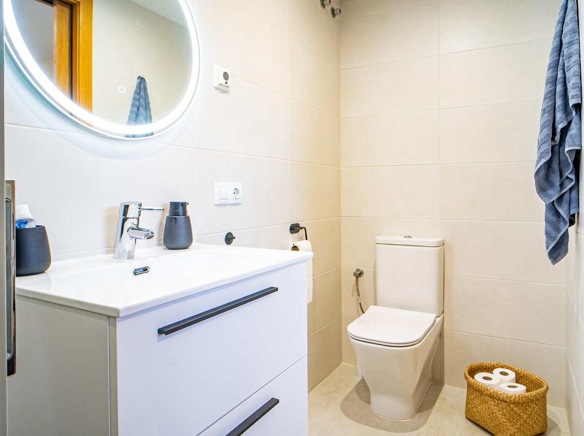 Denna lägenhet ligger i bostadsområdet Alfaz del Sol, cirka 1 km från centrum i Alfaz del Pi. Lägenheten har nyligen renoverats och har 2 sovrum, 2 badrum en-suite, en tvättstuga, ett öppet kök samt ett vardagsrum/matsal. Från vardagsrummet/matsalen finns utgång till en rymlig balkong med fri utsikt. Eftersom lägenheten ligger på hörnet finns det ett extra fönster i vardagsrummet som ger ännu mer naturligt ljus. Lägenheten är utrustad med luftkonditionering (varm och kall) samt golvvärme i hela bostaden, indelat i zoner. I priset ingår även en garageplats och ett förråd i samma byggnad.