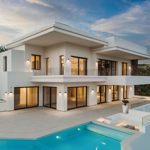 Below the house, there is a separate apartment of 108.22M2, featuring a large open plan kitchen, a large shower room, an open-plan bedroom and living area, walk in wardrobe, and plenty of extra built in storage. The apartment downstairs has its own entrance. You have bi-folding doors onto a large private terrace. The property doesn't have a pool, but there is a license for a pool, so you do not need to apply for one. The large store room / double garage at the front of the house has been enclosed, but the wall can be opened up very easily. At the entrance to the house you have electric gates and parking for 3 to 4 cars, the garden has some fruit trees and large hedges which gives you total privacy, the garden has been left for someone to put their own touch on to make it more personal especially if you want to have a pool, it is a blank canvas, super house and renovated throughout, 6 minute drive to Estepona port, lovely quiet location with super views to Gibraltar and the countryside.
