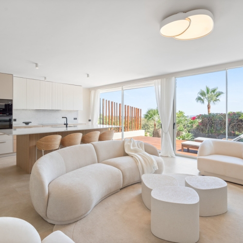 Inside you'll find a bright living area that opens to a 57 m² partly covered terrace, a luxury kitchen, and a separate utility room. There are two bathrooms, one en-suite, and two good bedrooms. From the private terrace you look across to the main swimming pool.