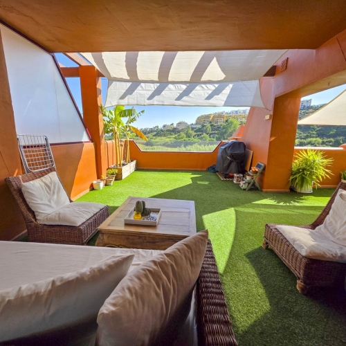 Vacker nybyggd lägenhet med 2 sovrum och privat terrass i ett vackert bostadsområde i ett nybyggt komplex i Manilva. Det öppna köket är fullt utrustat med vitvaror och ger fullständig utsikt över vardagsrummet och terrassen. Det är täckt och erbjuder utsikt över bostadsområdets gemensamma utrymmen. Det stora sovrummet är stort och ljust. Det finns ett andra sovrum med tillgång till en liten privat terrass. Båda sovrummen delar ett komplett familjebadrum med badkar. Fastigheten säljs delvis möblerad och har ytbehandlingar som marmorgolv och central AC. Bostadsområdet är gated och inkluderar innovativa och fantastiska bekvämligheter som håller på att färdigställas, såsom: infinitypool, chiringuito, biograf, dedikerat co-working space, stor plaskplats för barn, barnpool och lekplats, paddel-, tennis- och utomhusgymbana, grillplatser, concierge-service och buss! Läget är idealiskt, bara några minuters bilresa från närmaste strand och bekvämligheter, mindre än 15 minuter från Sotogrande hamn och mindre än 10 från Duquesa hamn. Det finns också många golfbanor i området och internationella skolor.