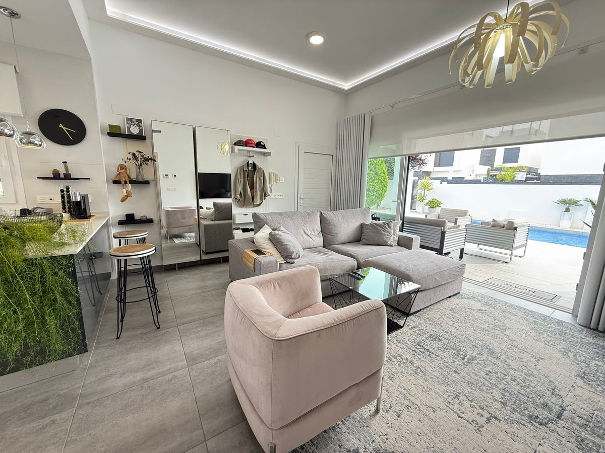 This beautiful modern detached villa is set on a private south-facing plot in a quiet, non-overlooked location and offers stylish single-level living. Built in 2019 and designed by the current owners, the home is presented in excellent condition with a build size of 97 m² on a 403 m² plot.